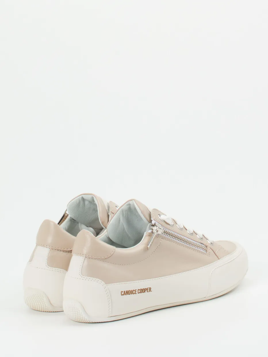 Minimalistisch, funktional, stilvoll.Candice Cooper bringt mit diesem Low-Top-Sneaker eine elegante Damenvariante in den Alltag. Der beigefarbene Sneaker erfüllt urbane Ansprüche mit seinem weichen, taupefarbenen Kalbleder – ergänzt durch helle Akzente an Kappe und Ferse. Die Kombination aus Schnürung und seitlichem Reißverschluss bietet angenehmen Komfort, während die rutschhemmende Gummisohle auf Schritt und Tritt Trittsicherheit gewährleistet. Der klassische Schnitt mit geprägtem Logo fügt sich stimmig in den Trend „Quiet Luxury“ ein. Gerade zu Slim-Fit-Jeans oder dezenten Stoffhosen ideal kombinierbar. Markenqualität mit stilbewusster Zurückhaltung – alltagstauglich und modern.