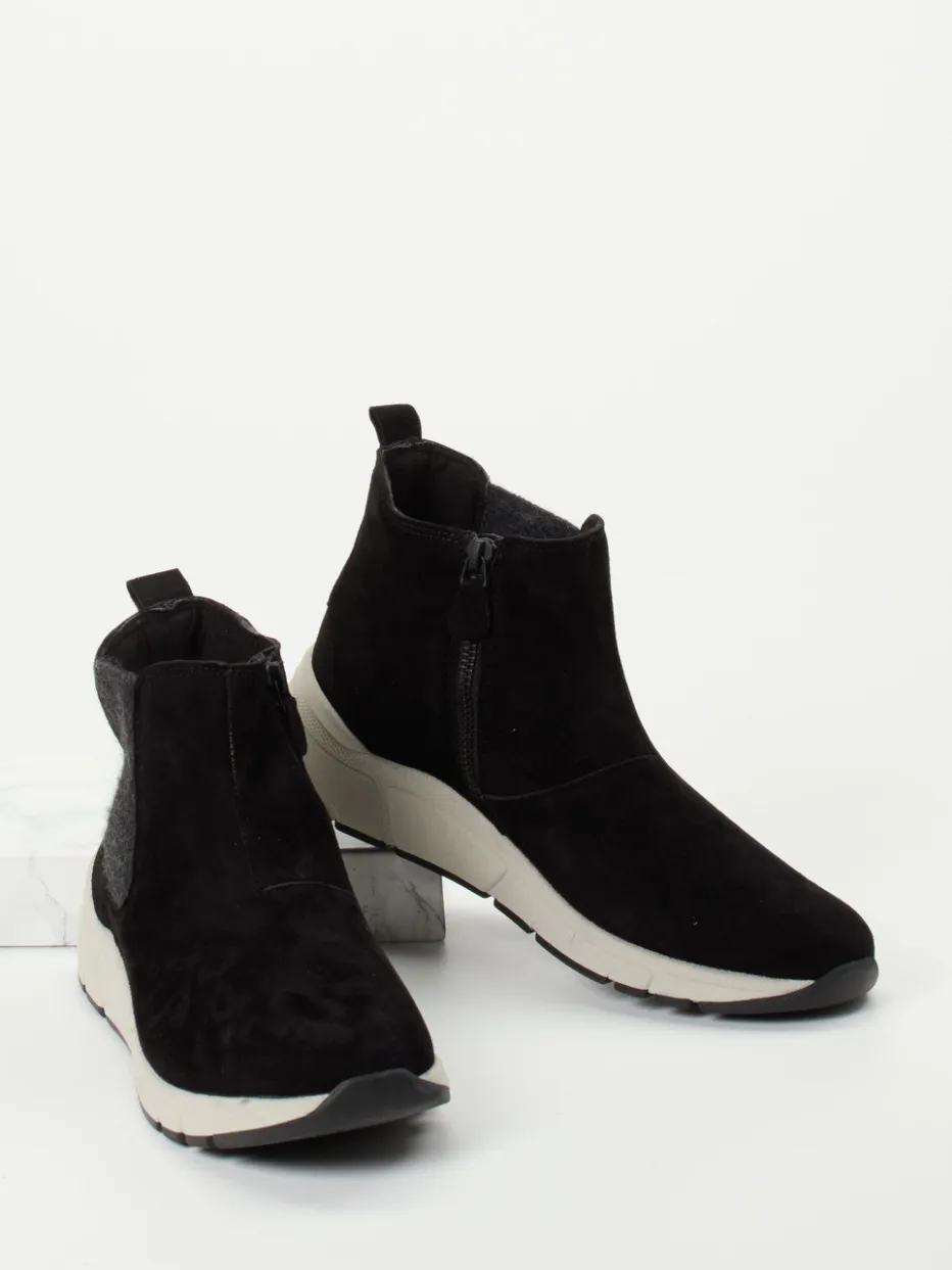 Schwarzes Veloursleder trifft auf klare Linien und funktionale Details. Die Stiefelette vereint Komfort, Minimalismus und zeitgemäße Streetwear-Elemente.