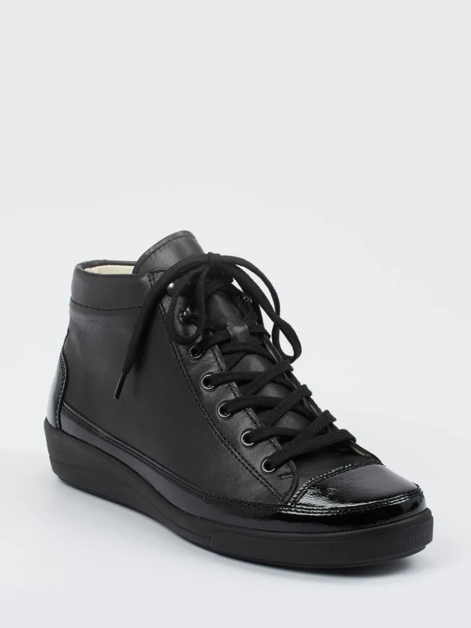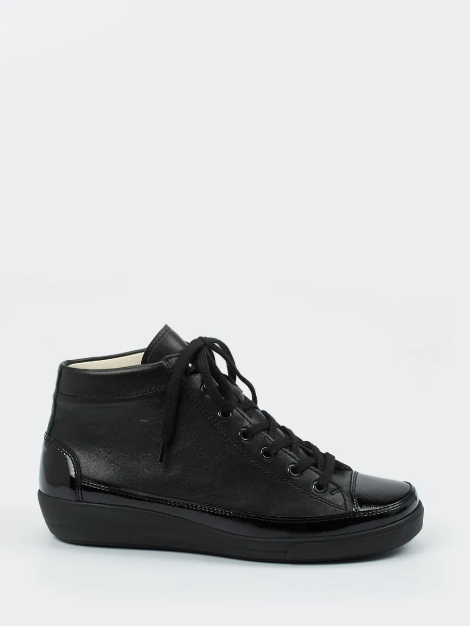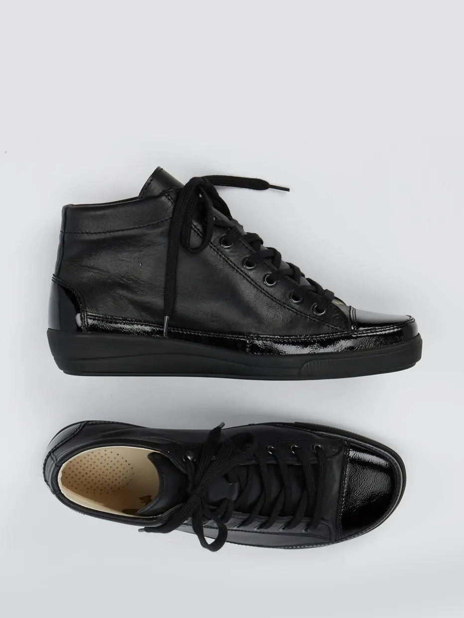 Der High-Top-Sneaker von Christian Dietz vereint edlen Look mit orthopädischem Komfort. Der Materialmix aus Glatt- und Lackleder sorgt für ein stilvolles Auftreten.