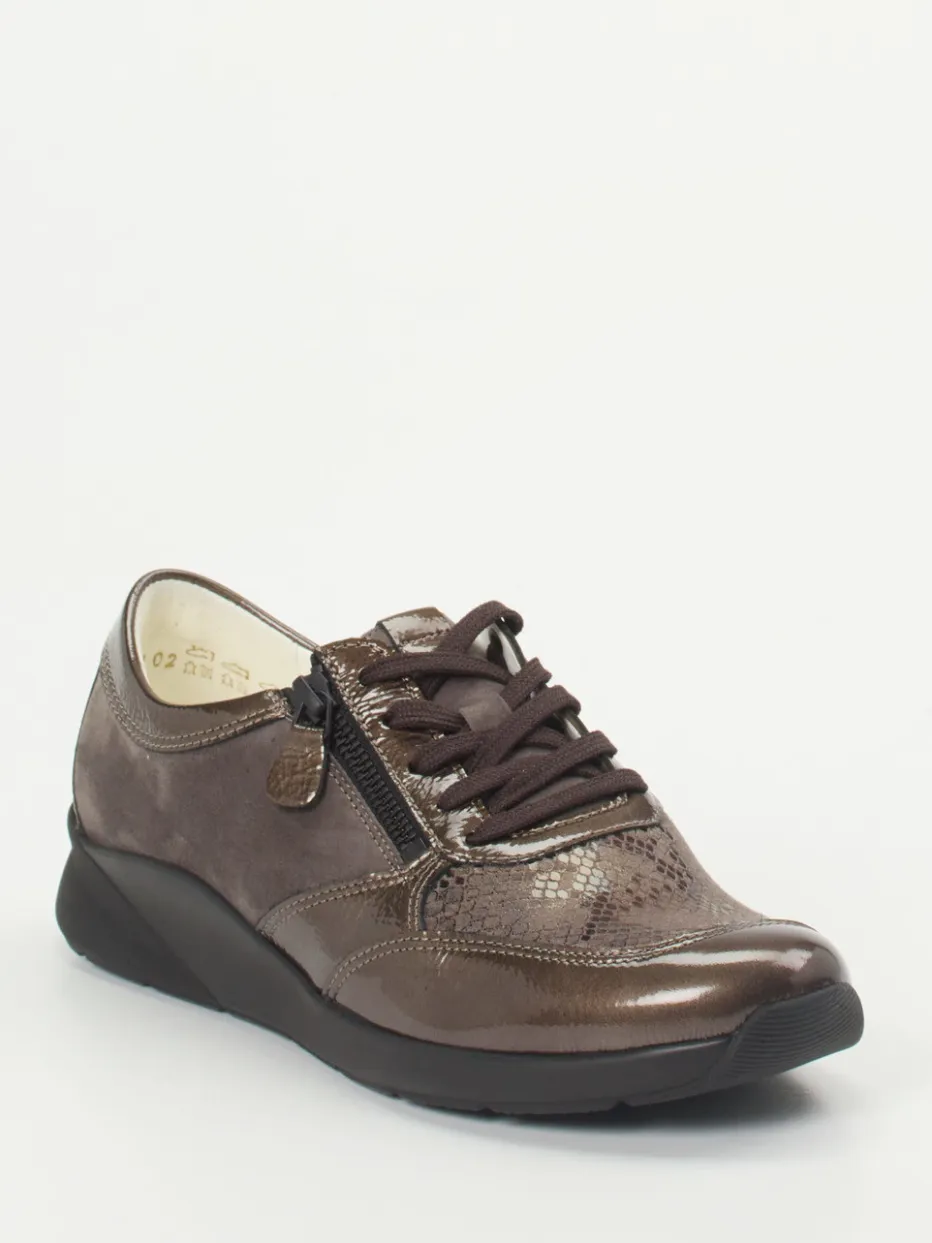 Schokobraune Raffinesse, die komfortabel bewegt.Christian Dietz präsentiert mit diesem Komfort-Sneaker aus der Pure Wellness Serie eine perfekte Verbindung aus modischem Anspruch und funktionaler Leichtigkeit. Ob beim Stadtbummel oder im entspannten Alltag – das Zusammenspiel aus weichem Veloursleder und schimmerndem Python-Druckleder sorgt für ein angenehmes Tragegefühl und eine außergewöhnliche Optik. Die schokobraune Farbgebung wird durch glänzende Overlays unterstrichen, während Stretch-Einsätze im Vorderblatt Druckstellen vorbeugen. Dank Reißverschluss und Schnürung ist ein schneller Einstieg ebenso gegeben wie eine individuelle Passform. Die stoßdämpfende Gummisohle überzeugt durch Flexibilität. Ein idealer Begleiter zu Casualwear und soften Naturtönen. Christian Dietz vereint hochwertige Materialien mit ergonomischem Design für anspruchsvolle Füße.