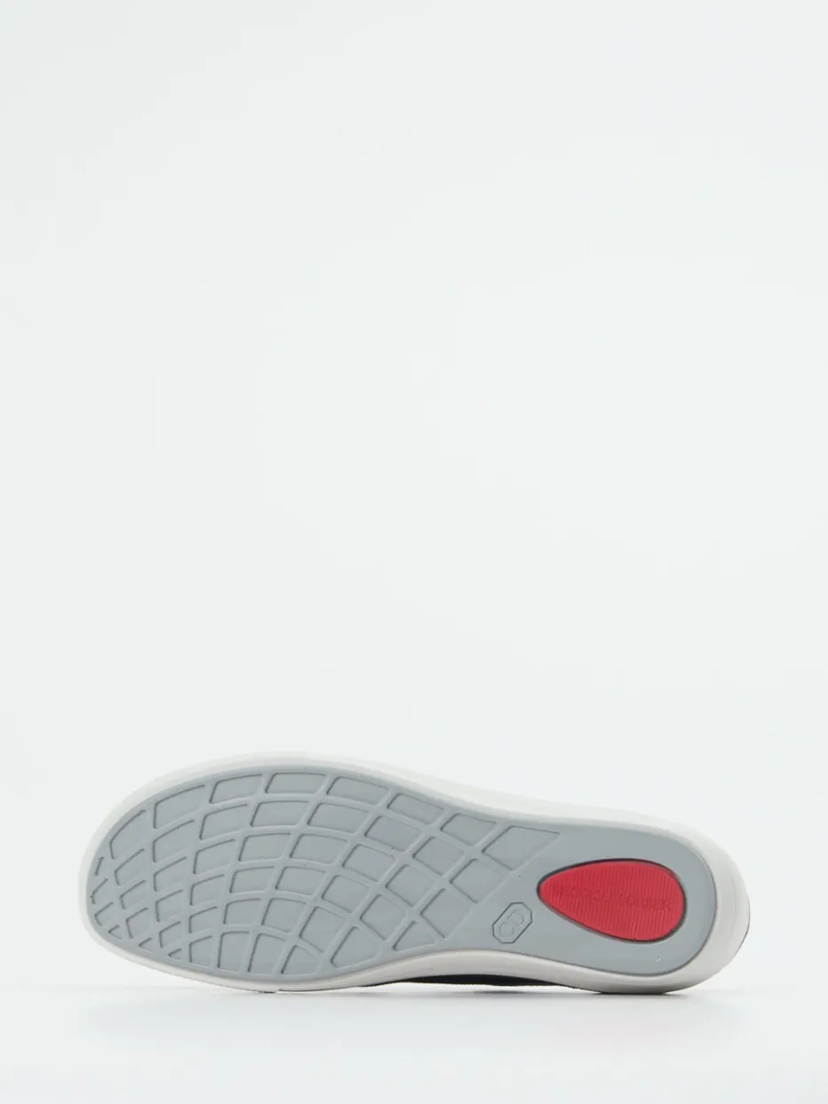 Komfort und Design in perfekter Balance.Christian Dietz präsentiert mit diesem Komfort-Sneaker ein Damenmodell für Alltag und Freizeit. Die Kombination aus nachtblauem Stretchmaterial und samtigem Veloursleder sorgt für elastischen Tragekomfort mit subtil glänzendem Finish. Eine rutschhemmende Gummisohle mit Dämpfungszone und das atmungsaktive, lederbezogene Korkfußbett bieten funktionale Leichtigkeit. Farblich bleibt der Schuh mit Dunkelblau und silbrig-grauen Akzenten modern zurückhaltend. Ergonomische Form, gepolsterte Details und Ton-in-Ton-Schnürung fügen sich harmonisch ins minimalistische Design ein. Komfortorientierte Ästhetik – mit typischer Christian-Dietz-Präzision umgesetzt.
