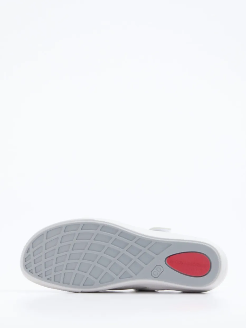 Schlichte Leichtigkeit mit durchdachtem Komfort.Christian Dietz präsentiert diesen bequemen Spangenpumps im Mary-Jane-Stil. Ideal für entspannte Tage zuhause oder im Alltag: Das pflegeleichte Stretch-Obermaterial zeigt sich in mattem Weiß mit subtil glänzenden Textileinsätzen. Die rund geschlossene Form und der praktische Klettverschluss sorgen für ein angenehmes Tragegefühl. Eine ergonomisch gedämpfte Gummisohle sowie ein Leder-/Textilfutter steigern den Komfort. Dezente Nahtdetails und eine verstärkte Ferse unterstreichen das cleane Design. Die Passform in Weite H macht das Modell besonders attraktiv für komfortaffine Trägerinnen. Komfort in stilvoller Zurückhaltung – typisch Christian Dietz.
