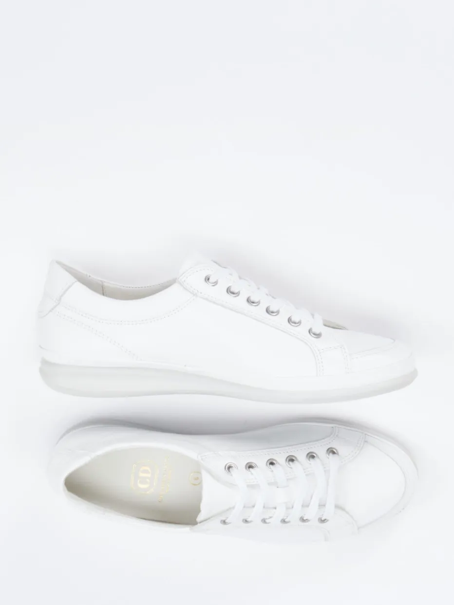 Minimalismus, der bleibt.Christian Dietz präsentiert mit diesem Damen-Sneaker ein Modell für Alltag und Business. Gefertigt aus feinem, matt strukturiertem Kalbleder in strahlendem Weiß, überzeugt der Low-Top mit klassisch-flacher Silhouette und toniger Gummisohle. Silberfarbene Ösen setzen dezente Akzente, während die gepolsterte Ferse und das wechselbare Fußbett maximalen Komfort bieten. Das cleane Design vereint Casualwear mit modernen Quiet-Luxury-Elementen – perfekt zu weiten Stoffhosen oder schlichten Sommerkleidern. Ein zeitloser Stilbaustein – funktionell, edel und durchdacht verarbeitet.