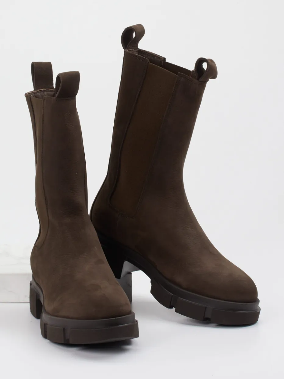 Damen Copenhagen – Chelsea Boots aus Velours-Kalbleder Dunkel