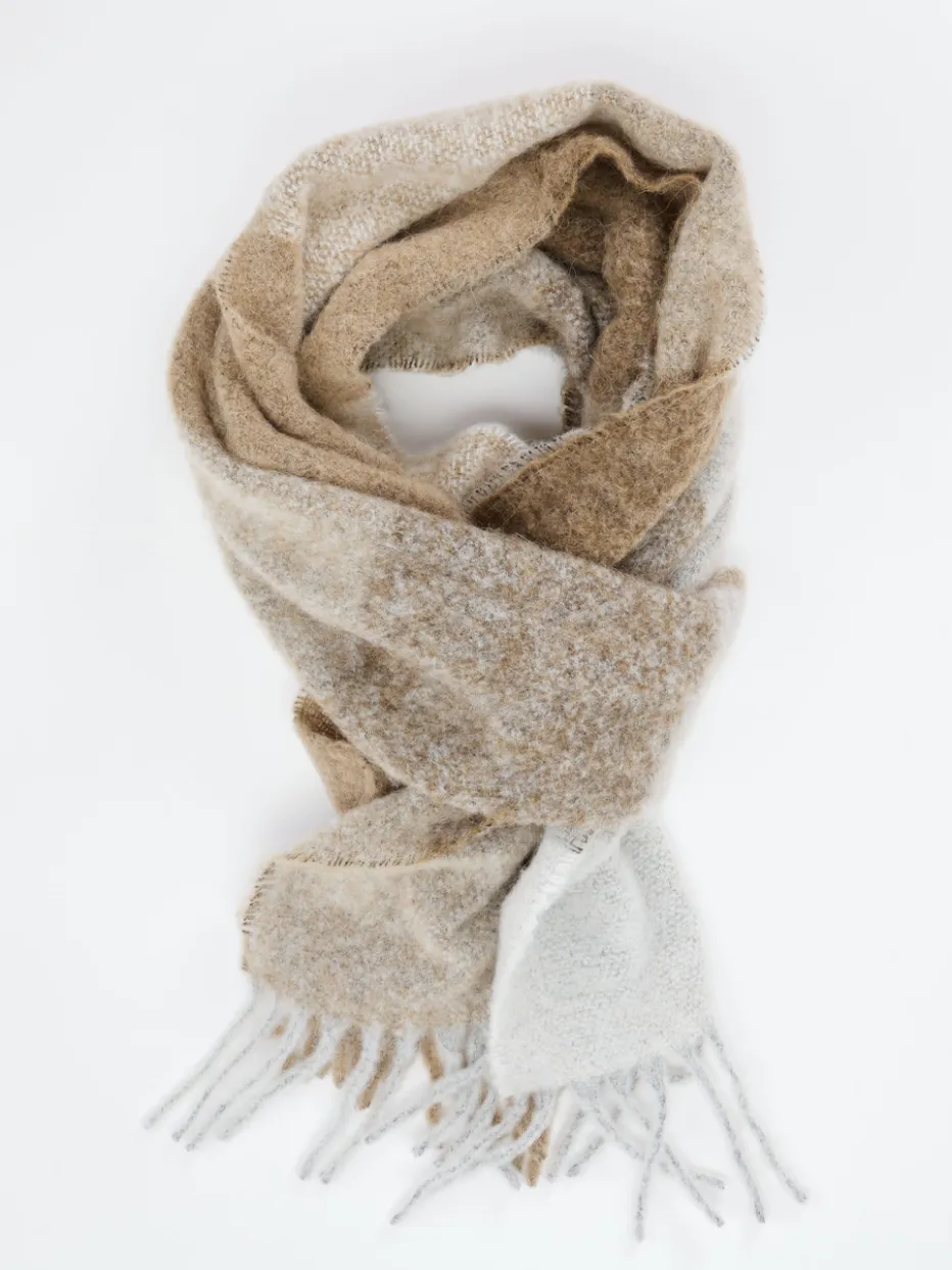 Ein angenehm weicher Wollschal mit alpaka-angereicherter Struktur – zeitlos im Design und ideal für stilbewusste Looks zwischen Scandi Chic und Understatement.