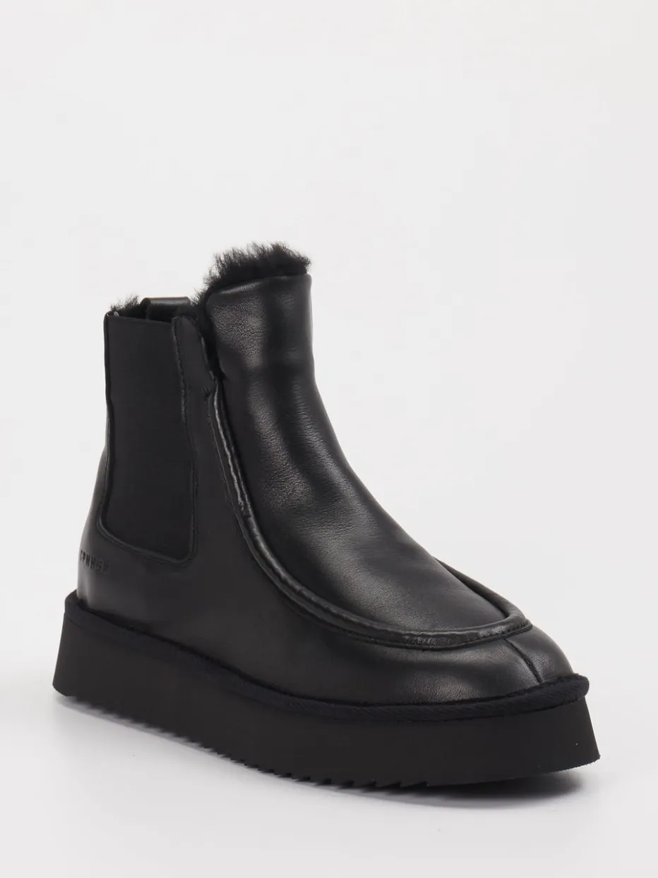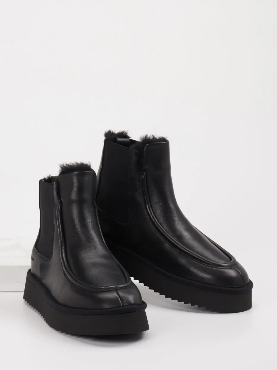 Diese gefütterten Chelsea Boots verbinden cleanes Design mit wintertauglicher Funktion. Robuste Sohle und glänzendes Finish setzen modische Akzente bei maximalem Komfort.