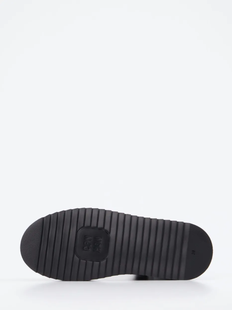 Stilsicher durch kalte Tage. Copenhagen präsentiert diese Damen-Stiefeletten in markanter Chelsea-Optik. Für winterliche Wege bietet das Modell mit seinem warmen Innenfutter aus Kunstfell unter dem angegebenen Lammfellfutter ein Plus an Komfort. Glänzendes Leder in tiefem Schwarz, tonale Nähte und eine klare, rund zulaufende Silhouette prägen das minimalistische Design. Charakteristisch für Chelsea Boots sind die elastischen Einsätze und der praktische Einstieg ohne Reißverschluss, ergänzt durch eine profilierte Gummisohle mit moderner Plateau-Optik. Der Stil ist inspiriert von Streetwear und „Quiet Luxury“ – ideal für urbanen Alltag und entspannte Looks. Copenhagen steht hier für urbanes Understatement mit funktionalem Anspruch.