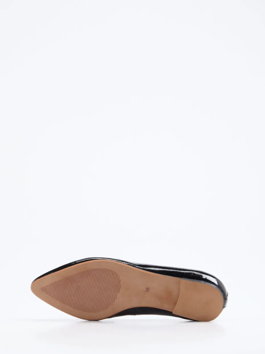 Der edle Glanz des schwarzen Lackleders unterstreicht den stilvollen Charakter dieses Damen-Loafers. Eine spitz zulaufende Form und dezente Details verleihen zeitlose Eleganz.
