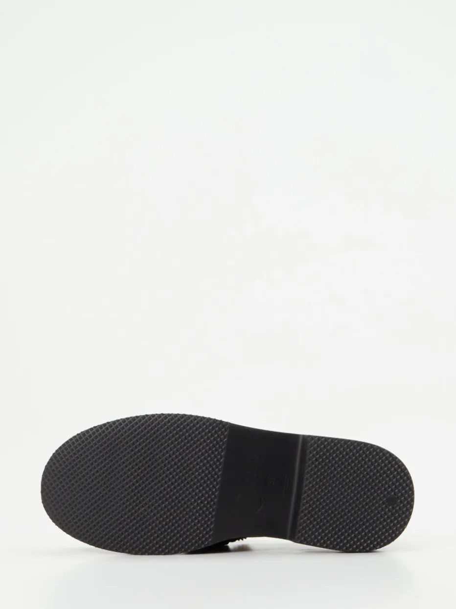 Für stilbewusste Alltagsmomente oder moderne Office-Looks bringt dieser Schlupfschuh ausgewogene Proportionen und edle Details mit. Das glatte, glänzende Leder wirkt hochwertig und reduziert, während der samtige Velours-Riegel mit Prägung und goldfarbenen Ziernieten einen subtilen Blickfang bildet. Die klobige Leichtzellsohle unterstreicht den Chunky-Trend, bleibt dabei jedoch leicht und komfortabel. Die Kombination aus Quiet Luxury und Streetwear-Elementen eröffnet vielseitige Stylingoptionen zu weitem Tailoring oder minimalistischen Ensembles.