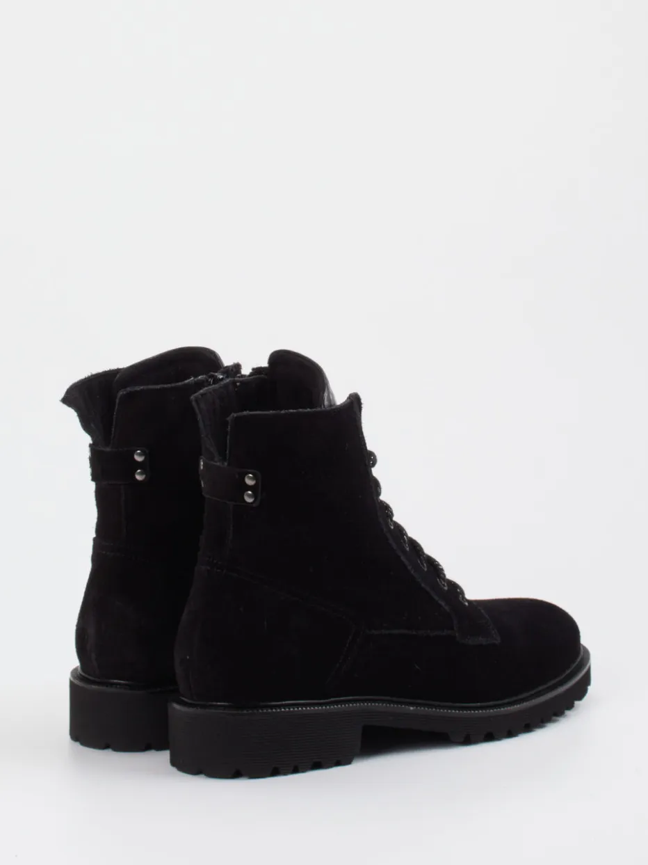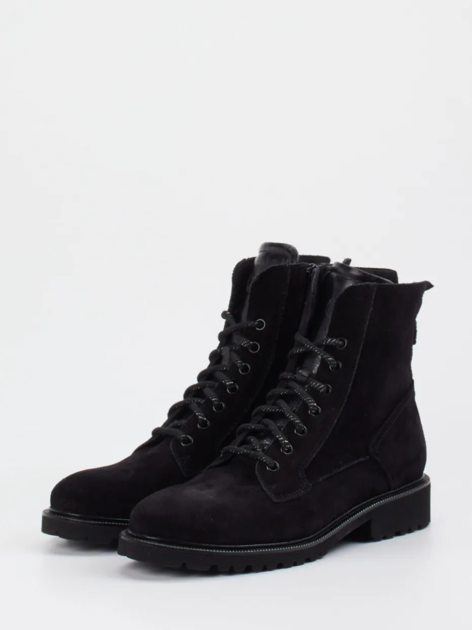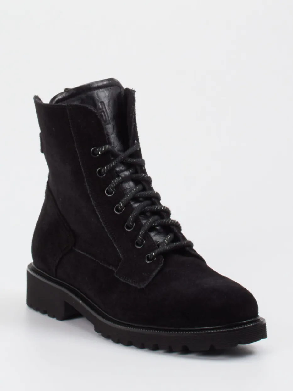Für urbanen Komfort an kalten Tagen.Durea interpretiert klassische Damen-Schnürboots mit schwarzem Veloursleder neu. Ideal für herbstliche City-Walks oder entspannte Outdoor-Touren überzeugen die hochschaftigen Boots mit samtigem Veloursleder, robuster Gummisohle und komfortabler Innenausstattung. Die Ton-in-Ton-Nähte und das geprägte Logo auf der Zunge betonen den minimalistischen Utility-Look. Reißverschluss und Schnürung erleichtern das An- und Ausziehen, während die griffige Profilsohle Halt bietet. Funktionalität trifft auf dezentes Design, passend für Casual-Styles mit Steppjacke und Mütze. Ein Schuh, der Alltagstauglichkeit und markentypischen Komfort stilvoll vereint.