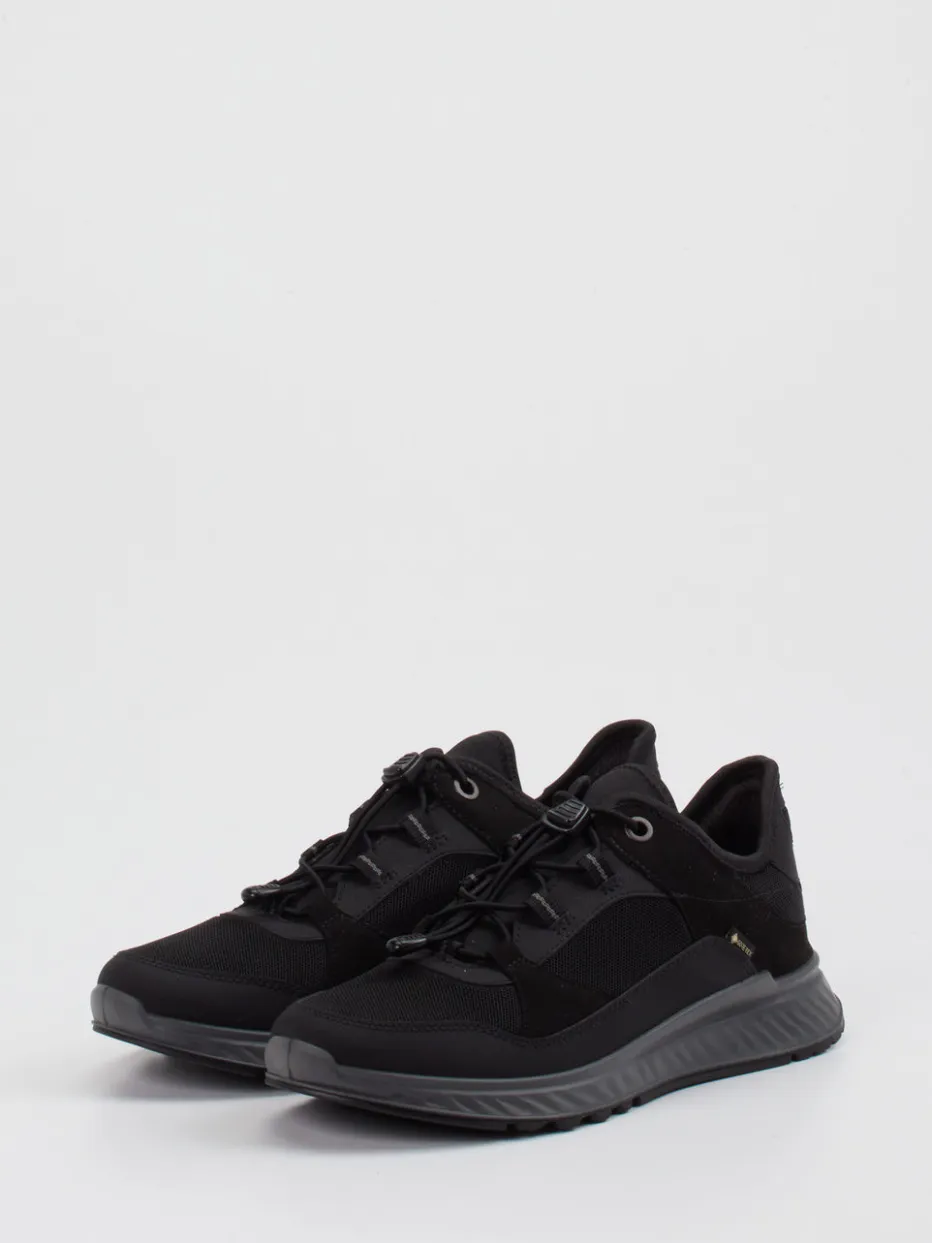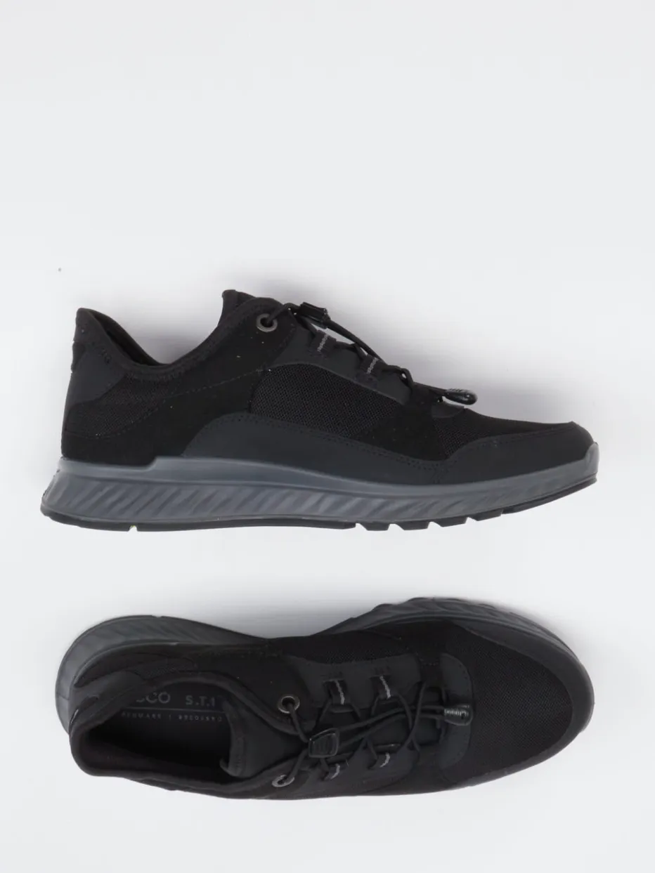 Technik trifft auf urbanen Anspruch.Ecco präsentiert einen Outdoor-Sneaker, der Komfort und Wetterschutz konsequent vereint. Für wechselhaftes Wetter gemacht: Dank wind- und wasserdichtem Textil mit atmungsaktivem Tex-Futter bleibt das Fußklima stets angenehm. Die schwarze, matt texturierte Oberfläche mit neongrünen Akzenten unterstreicht die dynamische Linienführung und den tech-inspirierten Look. Ausgestattet mit reflektierenden Details, Schnellschnürsystem und profilierter Gummisohle bietet der Sneaker sicheren Halt auf vielfältigem Terrain. Der Gorpcore-inspirierte Stil passt zu urbaner Funktionsmode und Outdoor-Outfits. Ein zuverlässiger Begleiter mit Funktionalität auf Ecco-Niveau.