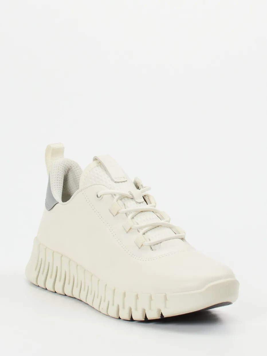 Leichtigkeit trifft auf urbanen Stil.Ecco präsentiert mit diesem Sneaker ein ausgewogenes Modell für Damen. Ideal für aktive Tage, überzeugt der Sneaker mit weichem Kalbleder und einem atmungsaktiven Hightech-Mesh-Futter. Die matte Offwhite-Farbe mit hellgrauer Fersenkappe und klassisch-runder Silhouette unterstreicht den minimalistischen Look. Eine flexible Gummisohle und die gepolsterte Zunge erhöhen den Tragekomfort, während die Zuglasche und Ton-in-Ton-Schnürung dezente Akzente setzen. Im Stil von „Quiet Performance“ ist dieses Modell perfekt für sportlich-inspirierte Freizeitoutfits. Ein moderner Komfort-Allrounder im reduzierten Straßenstil von Ecco.