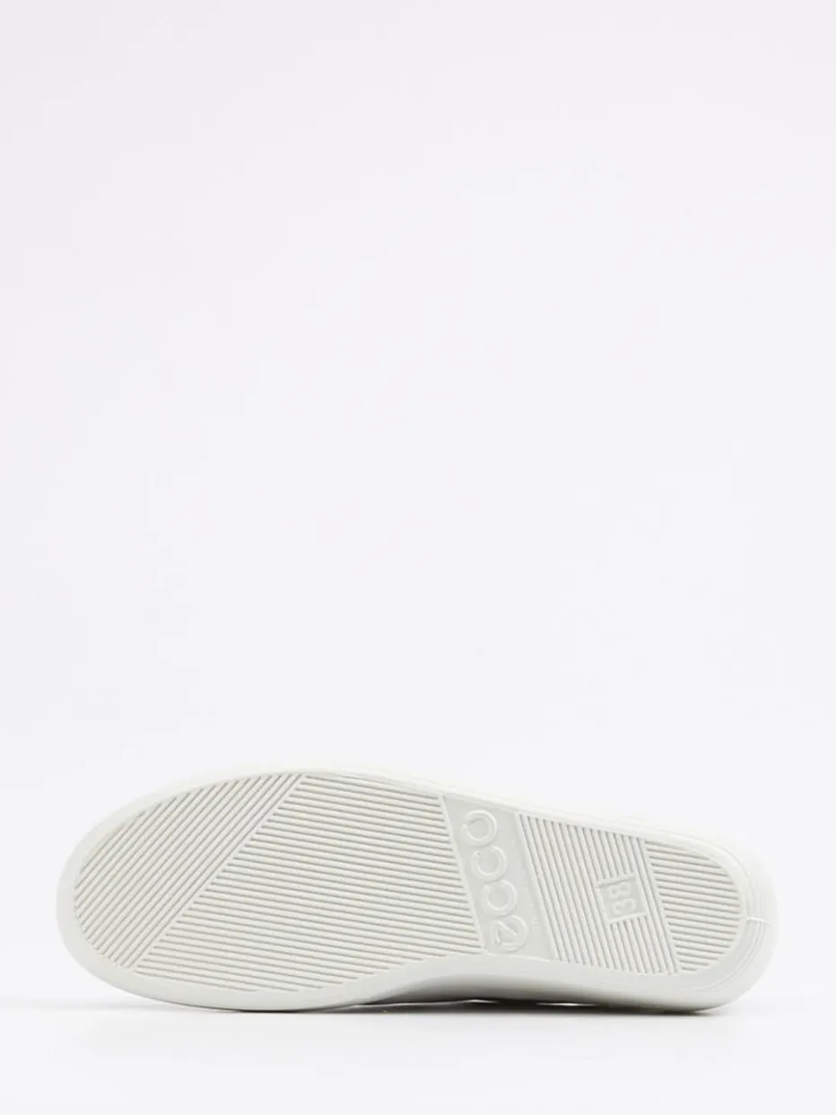 Modern präsentiert sich dieser Sneaker der Marke Ecco. Das weiche, weiße Kalbleder wirkt durch die Steppnähte und die cremefarbene Schnürung sportlich. Seitlich zeigt sich das Markenlogo, welches den Look unverkennbar werden lässt. Das leichte Textilfutter und das bequeme, herausnehmbare Fußbett garantieren einen angenehmen Tragekomfort. Die tonige Sneakersohle aus Gummi ist profiliert und verspricht Alltagstauglichkeit.