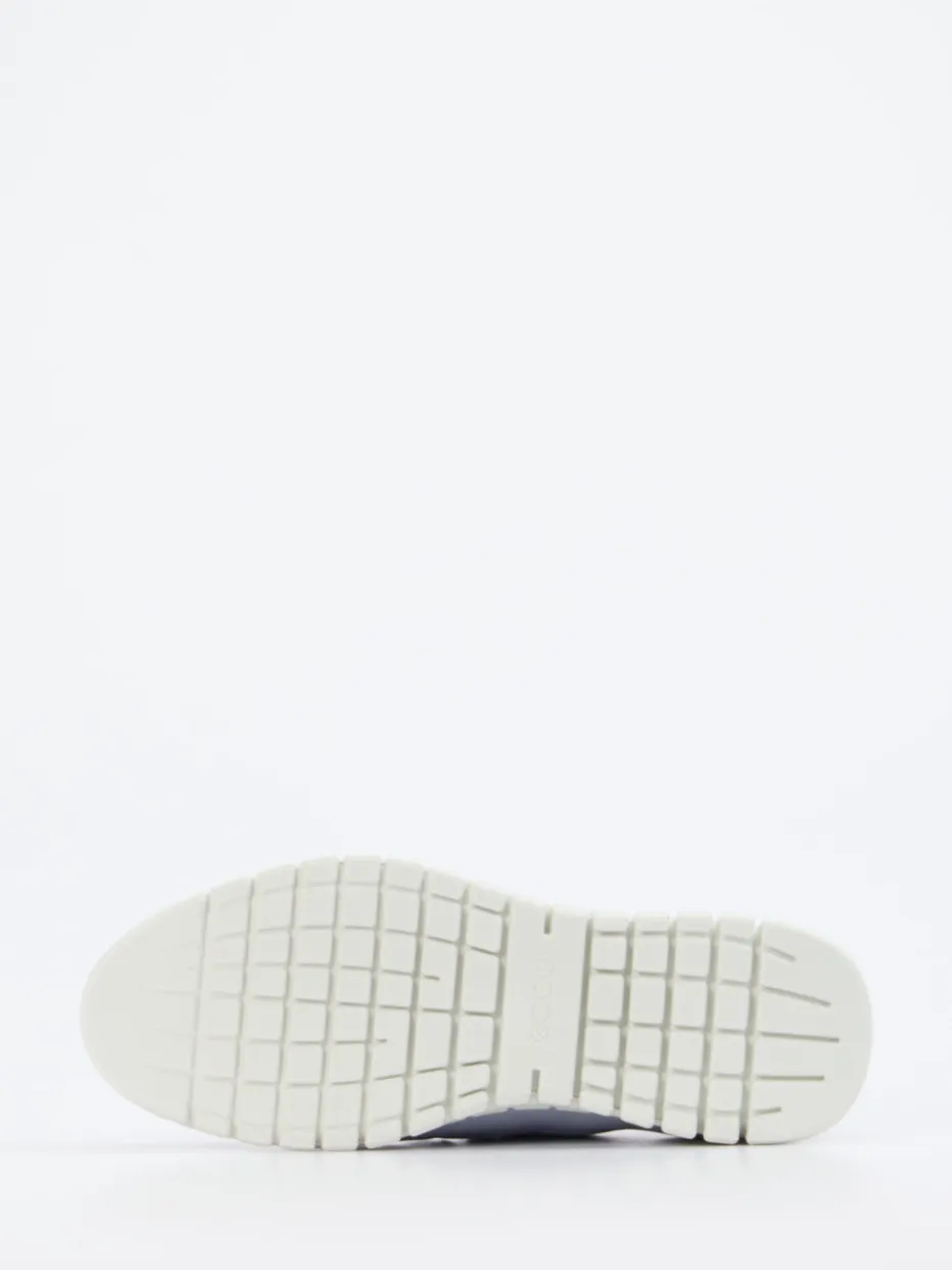 Technisch gestrickt, stilvoll kombiniert. Ecco präsentiert mit diesem Damensneaker ein sportliches Low-Top-Modell aus atmungsaktivem Textil. Ideal für entspannte Alltagsmomente oder leichte Freizeitaktivitäten: Das gestrickte Mesh-Obermaterial sorgt für hohe Luftdurchlässigkeit, während das elastische Schnellzugsystem schnelles An- und Ausziehen ermöglicht. Dominierend ist ein edler Pastellblauton, abgesetzt mit weißen Details wie der markanten Zuglasche samt Chevron-Muster. Die profilierte Laufsohle bietet sicheren Halt und passt zum komfortorientierten, minimalistischen Look. Dank Streetwear-Einflüssen und angesagter Pastellpalette ist der Sneaker trendgerecht kombinierbar – etwa zu Cropped-Pants oder Sportleggings. Ecco steht für durchdachten Komfort mit urbaner Ästhetik.