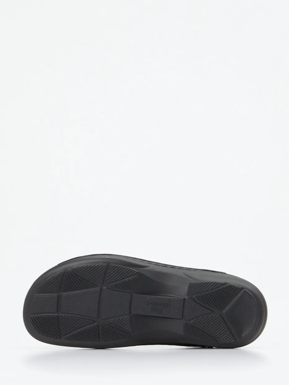 Diese ergonomisch geformte Damen-Pantolette kombiniert hochwertiges Kalbleder mit durchdachtem Komfort – ideal für entspannte Schritte im Alltag oder Zuhause.