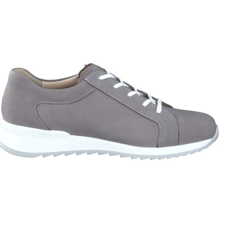 Komfort neu definiert.Finn Comfort präsentiert einen komfortablen Damen-Sneaker in taupefarbenem Nubukleder. Für Alltag und längere Wege konzipiert, überzeugt dieser Sneaker durch sein samtig angeschliffenes Obermaterial, die gepolsterte Shock-Absorber-Sohle und die Kombination aus Schnürung und seitlichem Reißverschluss. Die klassische flache Silhouette und der Minimalismus-Einfluss harmonieren mit der weißen Kontrastsohle und dem dezenten Logo. Das ledergefütterte Innenleben und das auswechselbare Korkfußbett fördern ein angenehmes Fußklima. Passend zu lässigen Freizeit-Looks und funktional-urbaner Mode. Ergonomischer Tragekomfort auf anatomischem Leisten mit entspannter Linienführung – typisch Finn Comfort.