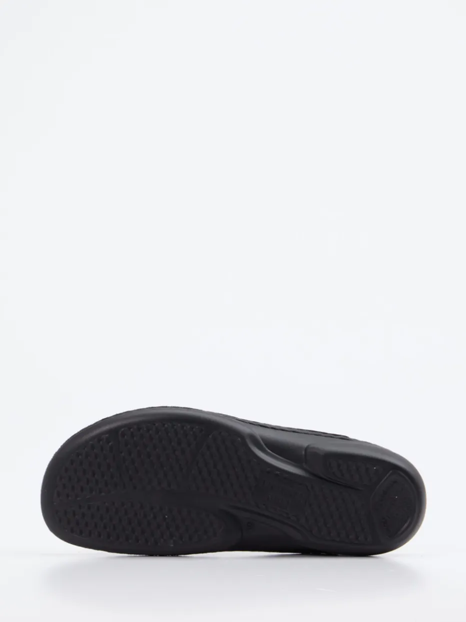 Ideal für lange Tage auf den Beinen überzeugt dieses Modell durch navyblaues, mattes Kalbleder mit hellen Kontrastnähten. Die offene Silhouette mit breiten Riemen und silberfarbener Schnalle unterstreicht klassisches Komfortdesign. Der individuell einstellbare Klettverschluss, das gepolsterte, lederbezogene Wechselfußbett sowie die rutschfeste PU-Sohle sorgen für sicheren Halt. Stilistisch steht die Sandale im Zeichen des „Quiet Luxury“ – zurückhaltend edel und funktional. Perfekt zu Leinenhose oder Sommerkleid.