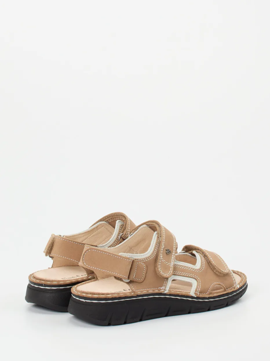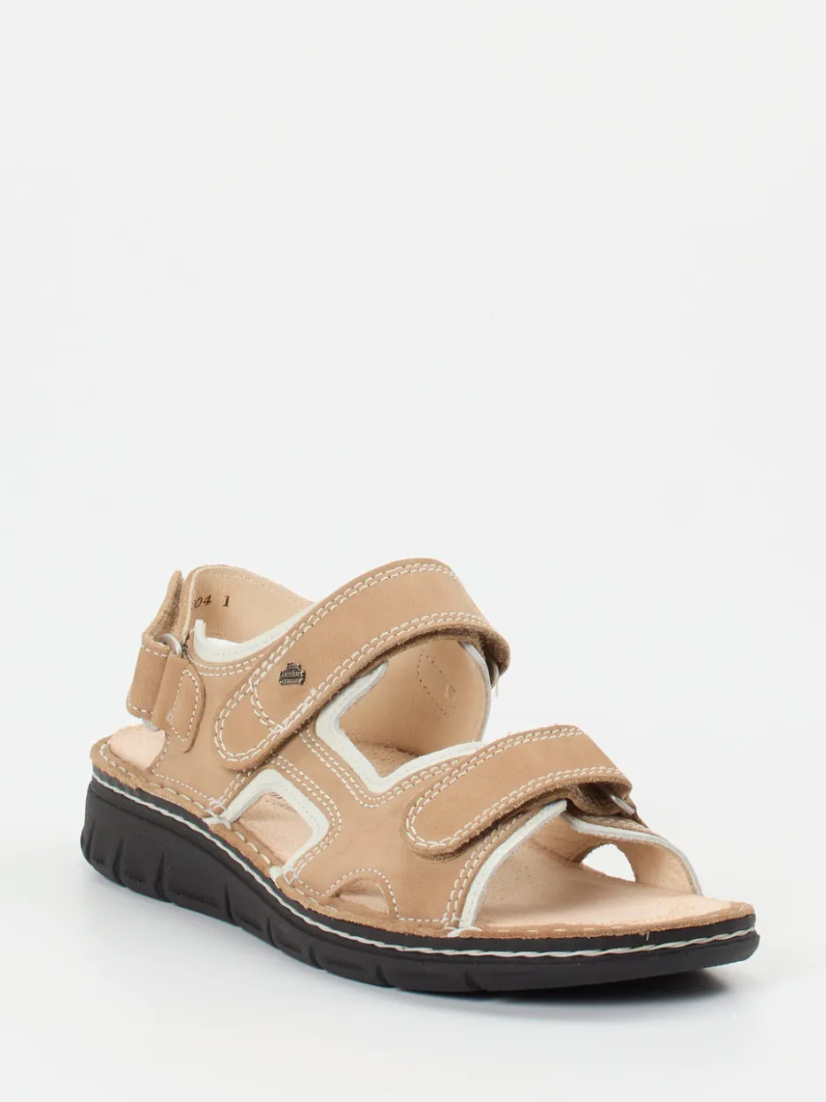 Entspannung für aktive Sommertage.Finn Comfort präsentiert mit dieser Komfort-Sandale eine stilvolle Lösung für Alltag und Freizeit. Das beigefarbene Nubukleder ist samtig angeschliffen und verbindet sich mit weißen Kontrastnähten zu einem harmonischen Gesamtbild. Die offene, ergonomische Silhouette wird durch drei verstellbare Klettverschlüsse unterstrichen, die für individuellen Sitz sorgen. Ein herausnehmbares, lederbezogenes Korkfußbett unterstützt den Tragekomfort. Die profilierte PU-Sohle bietet Trittsicherheit auf unterschiedlichsten Untergründen. Ein dezentes Logo-Emblem betont den Anspruch an Qualität. Ideal kombinierbar mit leichten Sommerstoffen. Perfekter Halt und ganztägiger Komfort – typisch Finn Comfort.