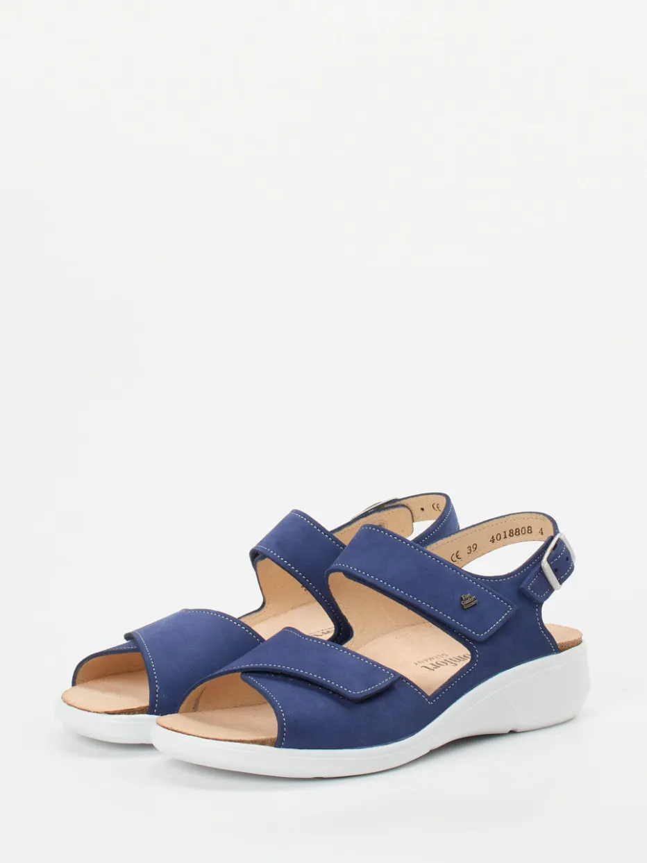 Ergonomisches Design trifft auf hochwertigen Komfort: Die Finn Comfort Sandale überzeugt durch marineblaues Nubukleder und praktische Klettverschlüsse.