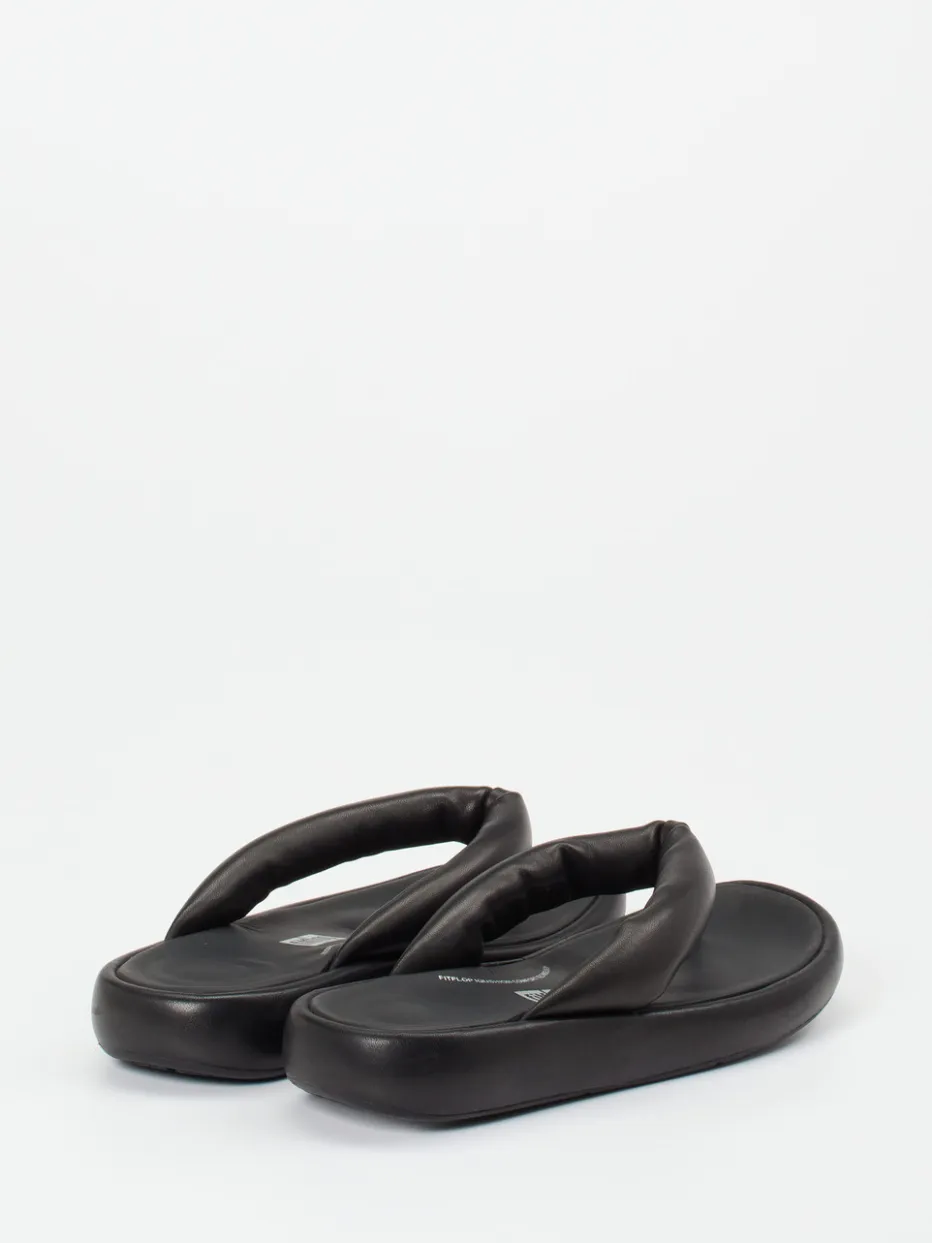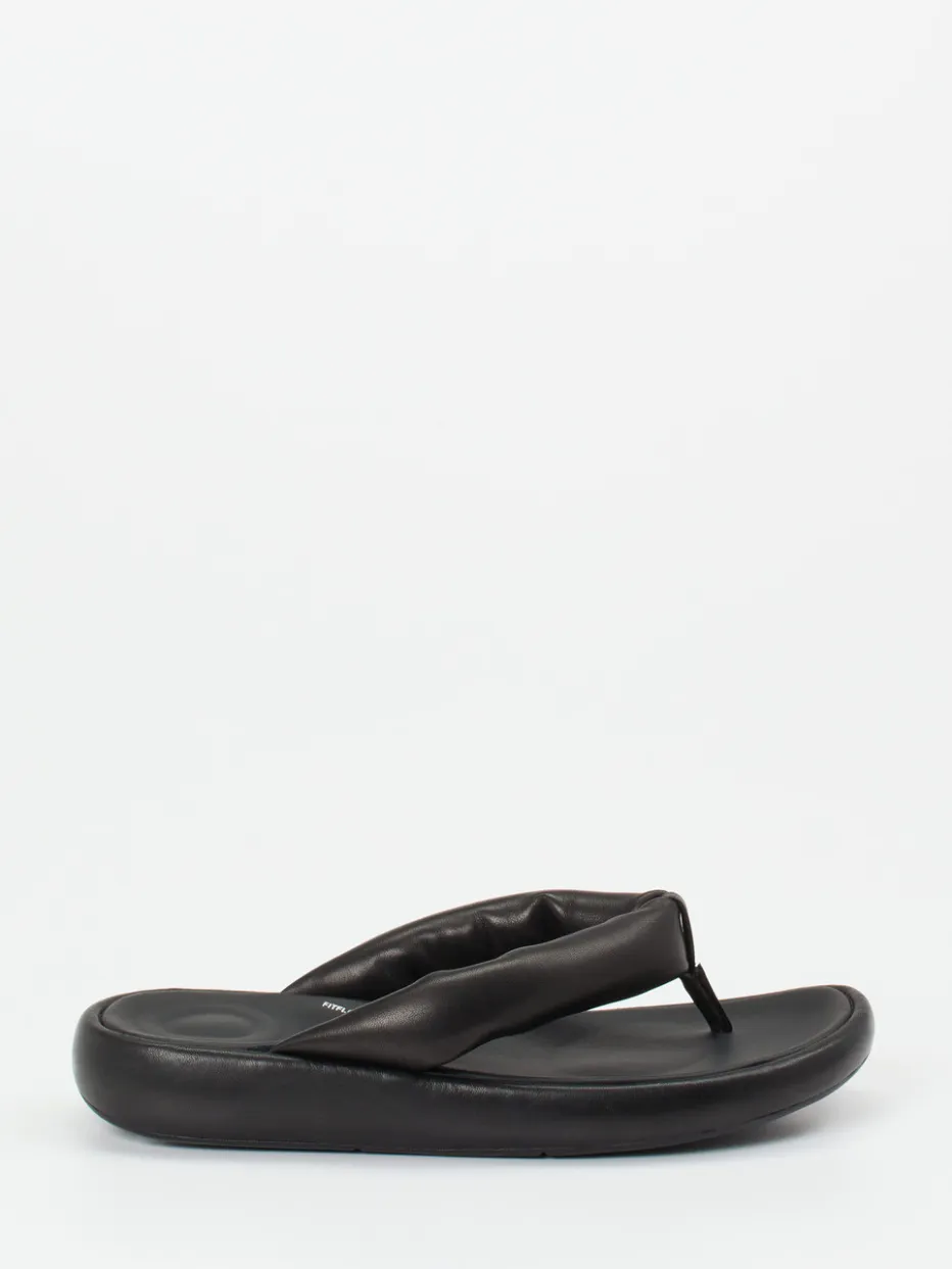 Minimalismus trifft Alltagskomfort.FitFlop präsentiert mit diesem Damen-Zehentrenner eine stilvolle Option für entspannte Sommertage. Ob beim Stadtbummel oder auf Reisen – das weiche Kalbleder mit matter Oberfläche schmiegt sich angenehm an den Fuß. Voluminös gepolsterte Riemen und eine ergonomische Gummisohle mit rutschhemmendem Profil entlasten bei jedem Schritt. Im tiefschwarzen Ton gehalten, besticht das klassisch-schlichte Design durch dezente Logo-Akzente und Ton-in-Ton-Details. Inspiriert vom „Quiet Luxury“-Trend verbindet das Modell funktionale Bequemlichkeit mit modischem Understatement. Perfekt zu fließenden Sommerkleidern oder Shorts. Ein Zehentrenner, der Komfort und Stil sichtbar in Einklang bringt.