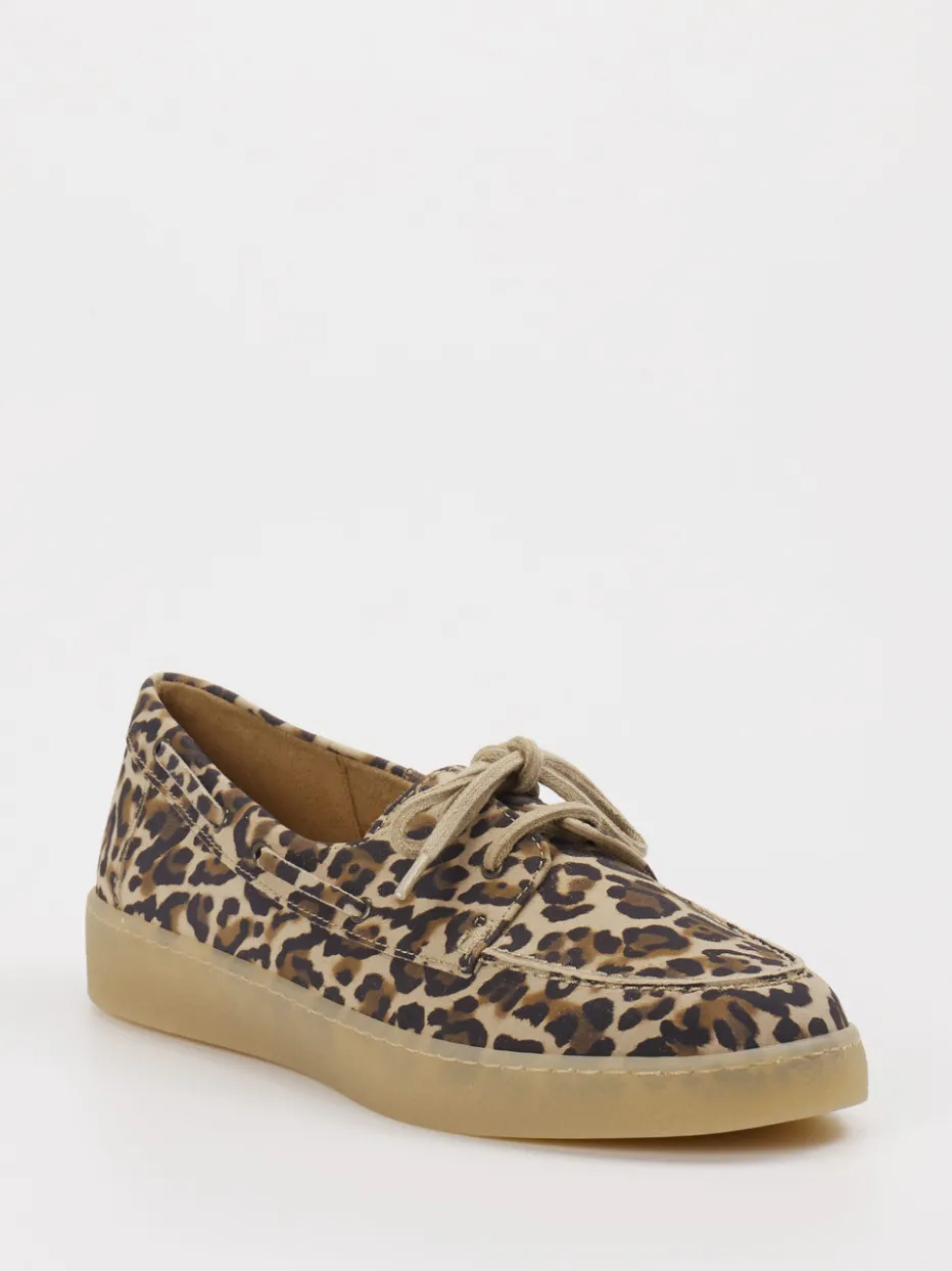 Tierisch trendig: Dieser Bootsschuh von Gabor vereint sommerlichen Komfort mit einem modischen Leoprint-Muster und passt ideal zum aktuellen Safari Chic.