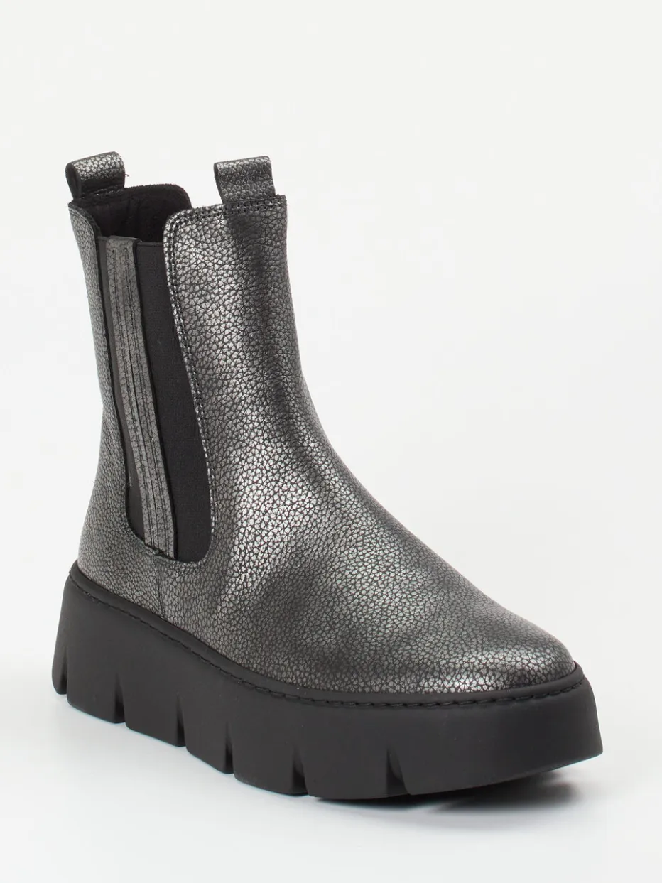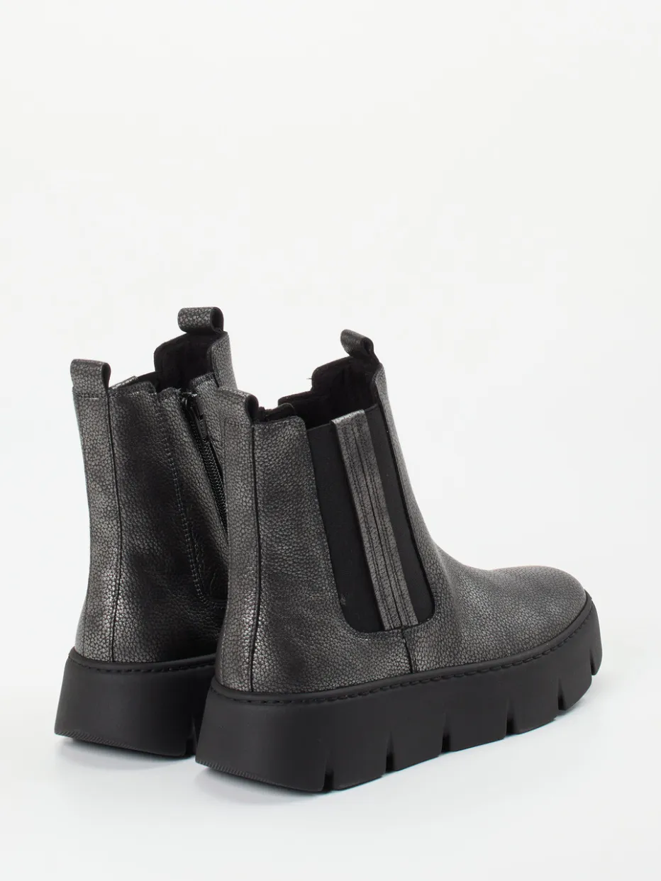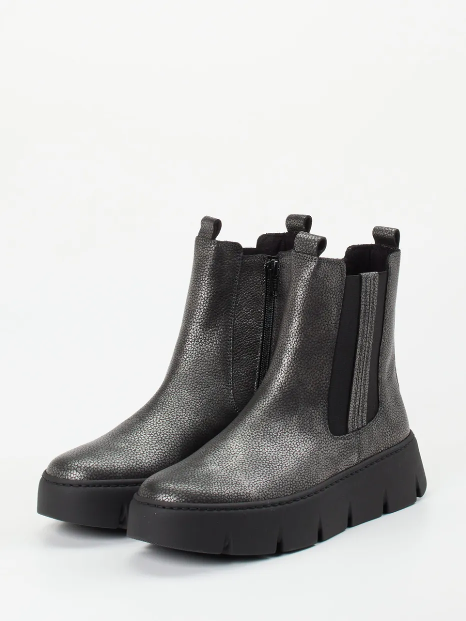 Diese Chelsea Boots von Gabor überzeugen mit genarbtem Leder in metallic-anthrazitfarbener Optik und einer komfortablen Chunky-Sohle im Trenddesign.