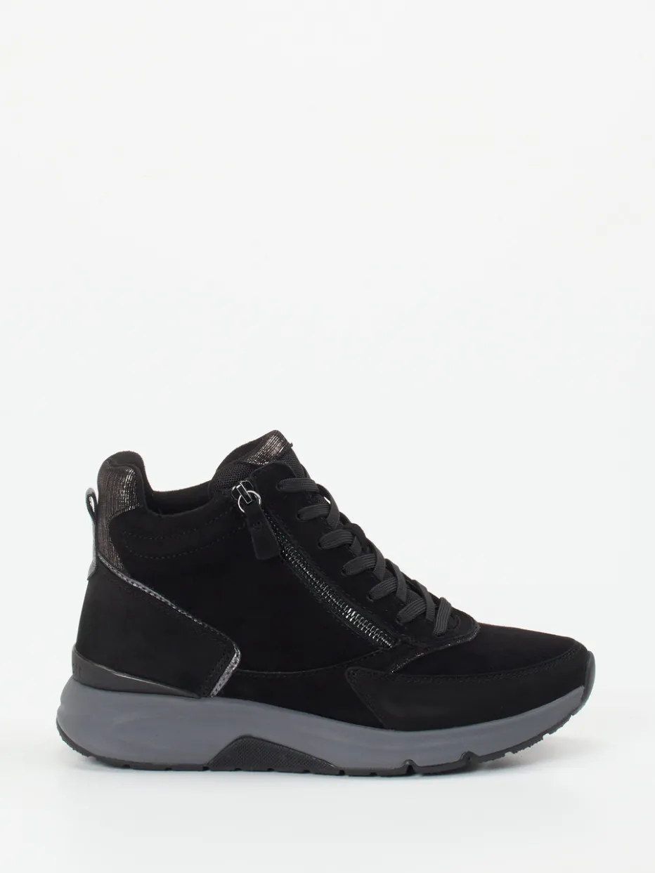 Sportlicher Komfort trifft auf dezente Eleganz: Der gepolsterte High-Top von Gabor Comfort kombiniert hochwertiges Veloursleder mit funktionalen Details und schimmernden Akzenten.