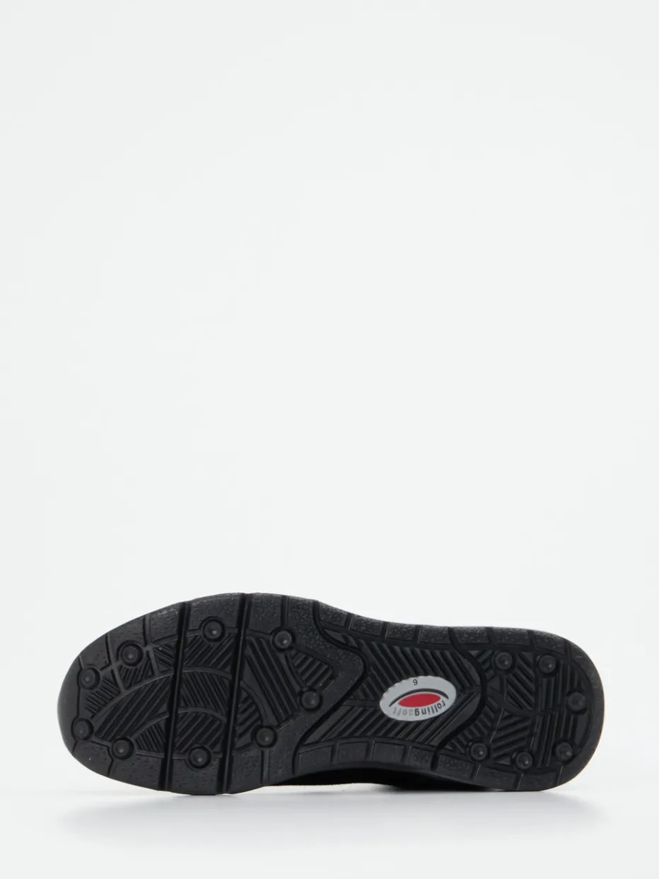 Schwarz trifft Komfort und Stil.Gabor Comfort interpretiert den High-Top Sneaker alltagstauglich neu. Für entspannte Stadtspaziergänge oder aktive Tage punktet das Modell mit strapazierfähigem Veloursleder, samtig-matter Oberfläche und dezent schimmernden Metallic-Overlays an Lasche und Ferse. Die sportlich-voluminöse Silhouette erscheint in tiefem Schwarz mit dunkelgrauen Kontrasten. Eine Schnürung mit seitlichem Reißverschluss ermöglicht schnelles Anziehen, während die gepolsterte Gummisohle mit Fersendämpfung sicheren Halt und hohes Tragegefühl garantiert. Athleisure-inspiriert, ideal kombinierbar zu Steppweste oder Leggings. Ein durchdachter Sneaker für komfortbewusste Looks mit urbanem Anspruch.