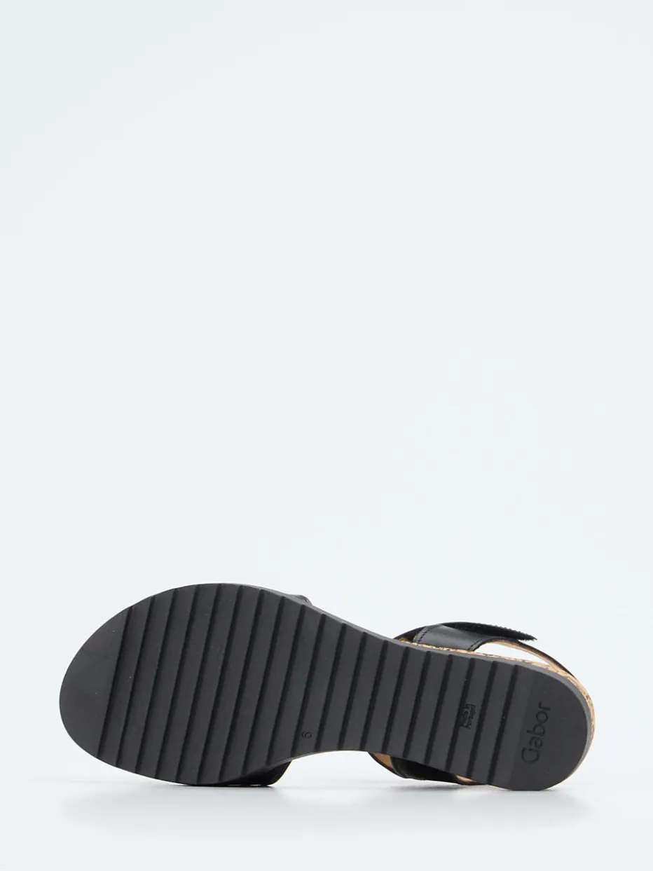 Sommerleicht und funktional zugleich.Gabor Comfort präsentiert eine zeitlose Komfort-Sandale für Damen. Für entspannte Urlaubsspaziergänge oder den urbanen Alltag bietet dieses Modell mit ergonomischem Fußbett langanhaltenden Komfort. Gefertigt aus edlem Kalbleder mit mattierter Oberfläche verleiht das klassische Schwarz der offenen Silhouette eine ruhige Eleganz. Verstellbare Klettverschlüsse und ein seitlicher Elasteinsatz sorgen für optimale Anpassung. Die profilierte Gummisohle mit keilartiger Kork-Zwischensohle ergänzt das funktionale Design mit einem natürlichen Akzent. Leicht kombinierbar zu Leinen oder Sommerblusen, unterstreicht sie den Trend zu minimalistischer Sommermode. Gabor Comfort steht für bequeme Qualität mit dezentem Designanspruch.