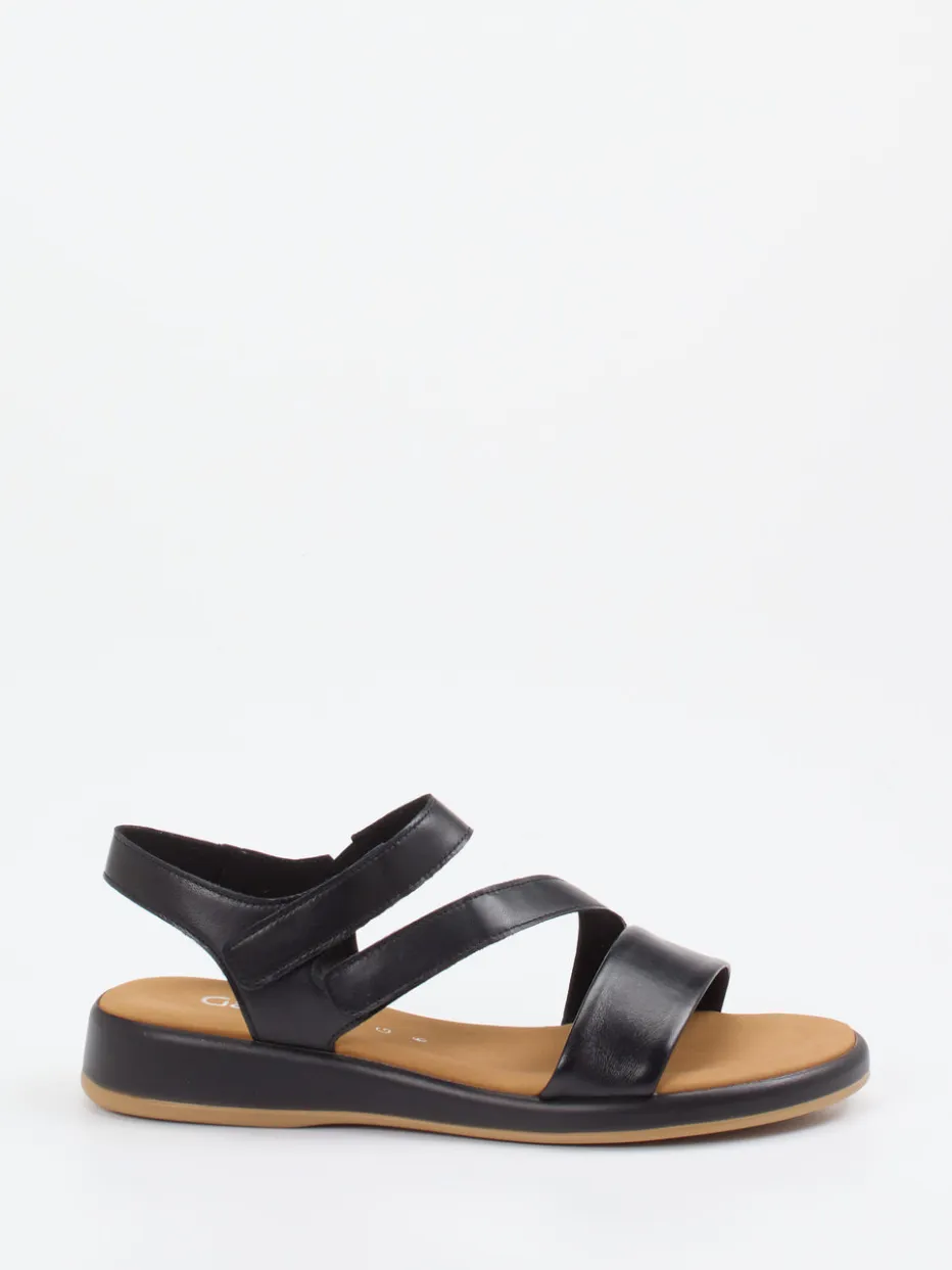 Gabor Comfort präsentiert eine Damen-Komfortsandale in Weite G, gefertigt aus schwarzem Kalbleder mit samtigem Velourslederfutter.