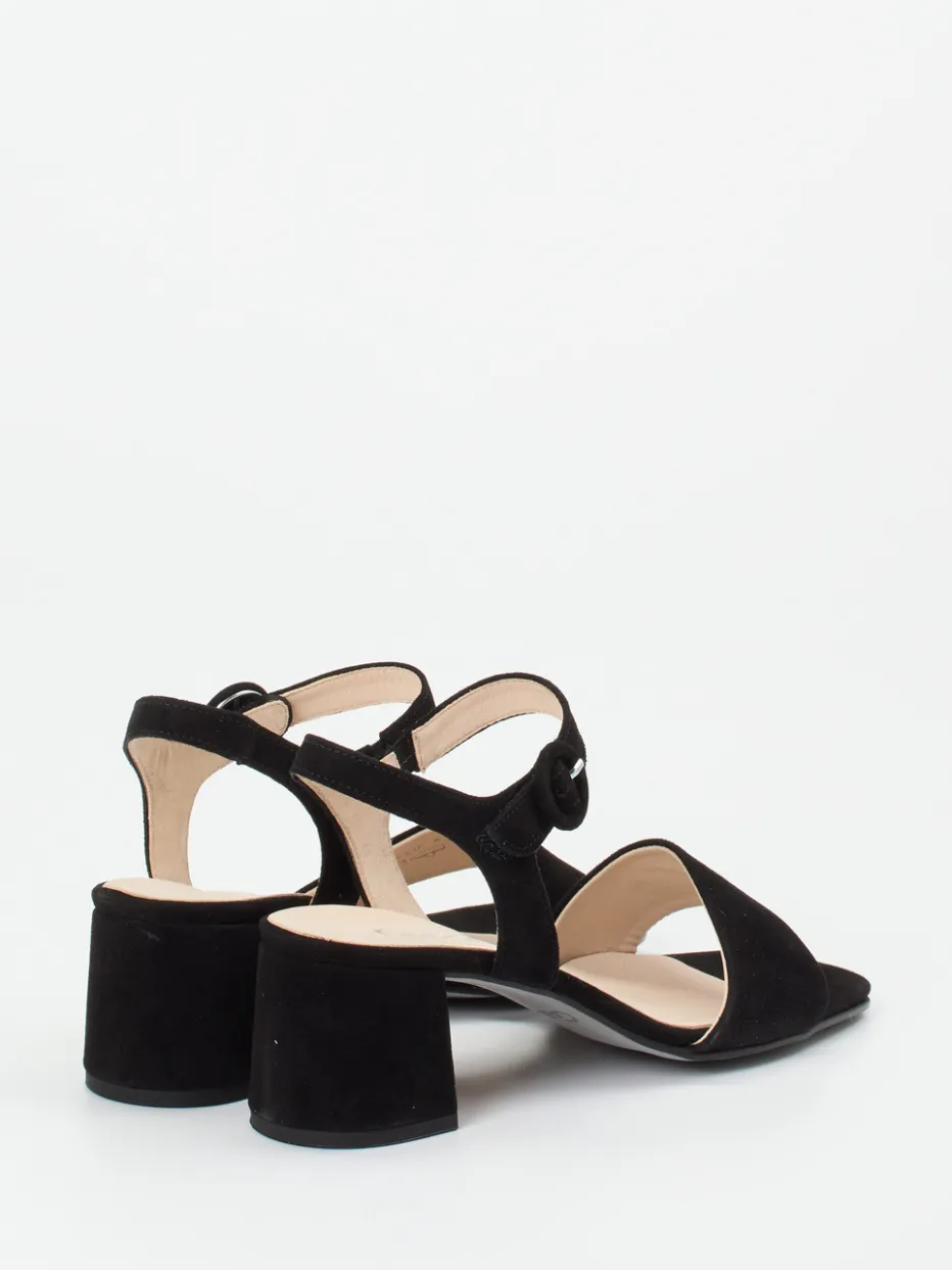 Mit ausbalancierter Silhouette, schwarzem Veloursleder und bequemem Blockabsatz verbindet diese Gabor Comfort Sandalette stilvolle Zurückhaltung mit funktionaler Raffinesse.