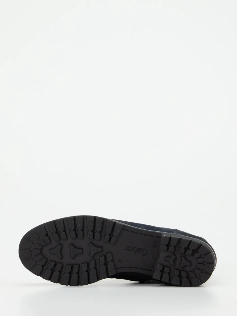 Minimalistische Eleganz für jeden Tag.Die Marke Gabor Comfort präsentiert eine klassisch geschnittene Schnürstiefelette für Damen. Ob im Büro oder bei langen Spaziergängen durch die Stadt – diese Stiefeletten bieten stilvolle Zurückhaltung mit praktischem Komfort. Das tiefdunkle Blau des weichen Veloursleders verleiht dem Modell in matter Optik seine edle Note. Ton-in-Ton-Nähte und der seitliche Reißverschluss unterstreichen das cleane Design, während die profilierte Gummisohle sicheren Halt gibt. Innen verwöhnt warmes Fleece-Futter, ein Wechselfußbett sorgt für orthopädische Flexibilität. Der Look fügt sich mühelos in den Quiet Luxury-Trend ein – ideal zu dunkler Wolljacke oder Ledertasche. Hoher Gehkomfort mit urbaner Funktion trifft auf zeitlose Linienführung.