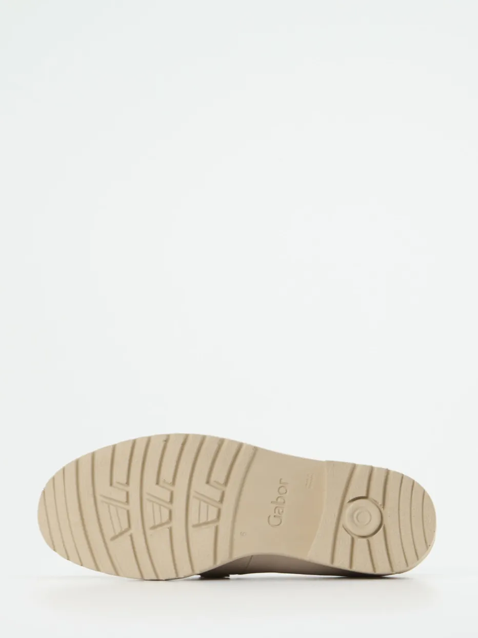 Pastell trifft Profil.Gabor Comfort präsentiert einen Damen-Slipper, der klassische Linien mit modischem Update verbindet. Perfekt für bewegte Tage zwischen Office und Freizeit: Das beige Nubukleder zeigt sich samtig angeschliffen und wird durch eine Zierkette in Marmor-Optik stilvoll ergänzt. Die breite, profilierte Gummisohle sorgt für Trittsicherheit und punktet mit Dämpfung. Die Schlupfform erlaubt einen leichten Einstieg, während das Modell mit der Weite H auch für Einlagen geeignet ist. Farblich abgestimmte Nähte und das pastellige Finish bringen modernen Streetwear-Charme ins Styling. Ein harmonischer Frühlingsschuh mit Markenkomfort und modischem Feinschliff.