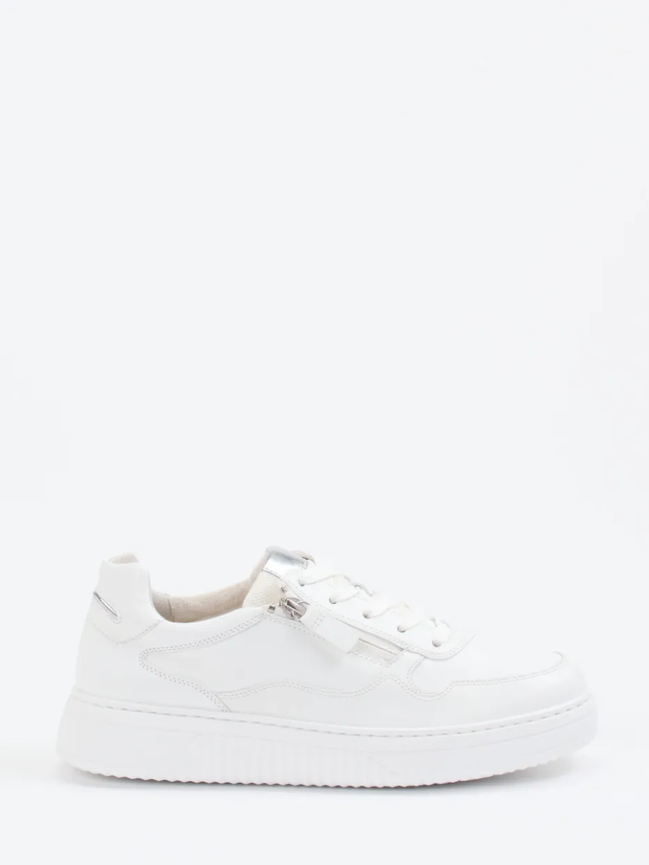 Dieser Sneaker von Gabor Comfort für Damen verbindet sportliche Akzente mit hochwertigem Kalbleder in klassischem Weiß.