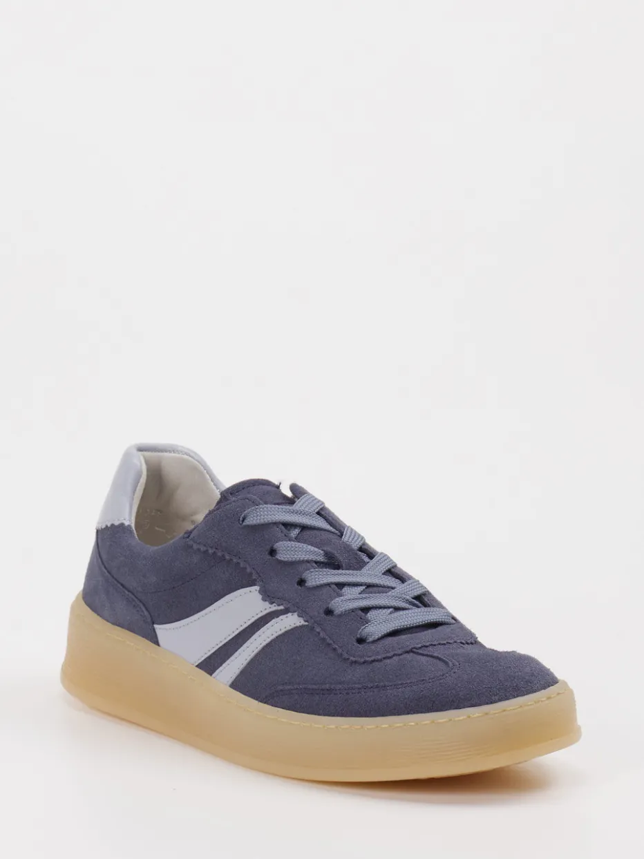 Stil trifft Komfort im Alltag.Dieser Damen-Sneaker von Gabor Comfort vereint Retro-Charme mit modernem Tragekomfort. Ideal für entspannte Alltagsmomente überzeugt das Modell durch ein Obermaterial aus Veloursleder mit weich genarbter Oberfläche. Die dominante blaugraue Farbgebung wird durch kontrastierende Seitenstreifen in Hellgrau und Beige stilvoll ergänzt. Klassisch rund geformt, mit Schnürung und verstärkter Fersenkappe, sorgt die bequeme Gummisohle in Naturton für zuverlässigen Halt. Der Schuh ist ein stilvoller Begleiter – perfekt abgestimmt auf Casualwear-Trends mit sportlicher Note. Ein Gabor-Komfortmodell, das Alltagstauglichkeit und modische Leichtigkeit stilvoll verbindet.
