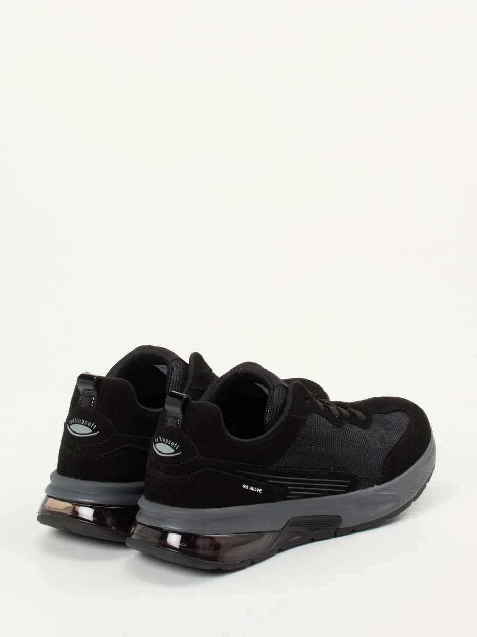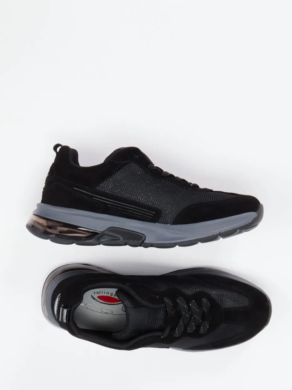 Sportlicher Komfort mit Detailanspruch.Gabor Comfort präsentiert einen Sneaker für Alltag und Freizeit mit sportlicher Silhouette. Der Materialmix aus samtigem Veloursleder und tonigem Mesh sorgt für Atmungsaktivität, während silberne Lurexfäden dem schwarzen Obermaterial einen subtilen Glanz verleihen. Die stoßdämpfende Gummisohle mit Rollingsoft-Technologie, inklusive transparenter TPU-Zwischensohle, unterstützt ein gelenkschonendes Abrollen. Mit gepolstertem Schaft, Schnürung und Wechselfußbett eignet sich das Modell besonders für komfortorientierte Nutzer. Inspiriert von Techwear-Trends lässt sich der Sneaker perfekt zu sportiven Streetwear-Looks kombinieren. Komfort trifft auf progressiven Stil – typisch Gabor Comfort.