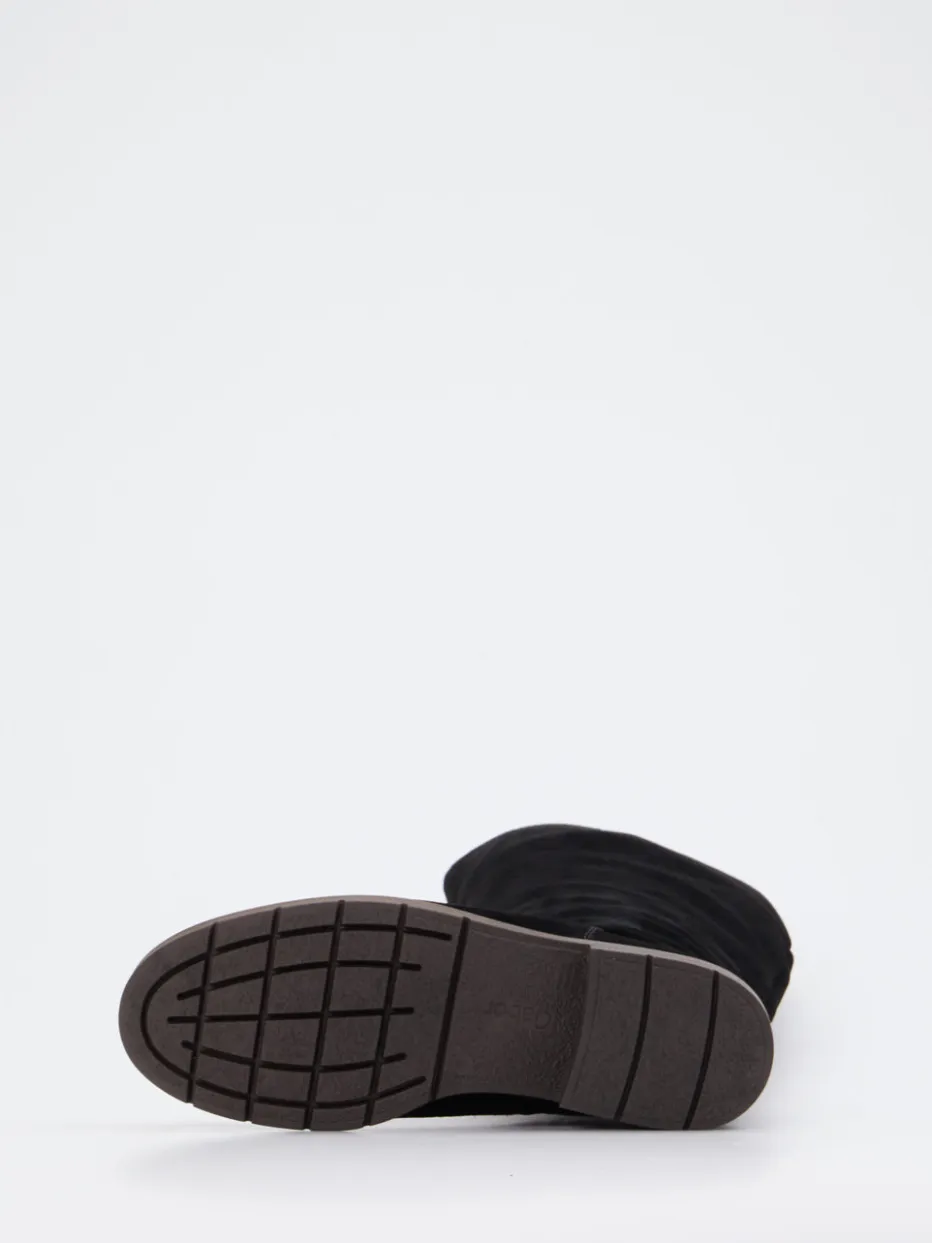 Geradliniges Design trifft herbstlichen Komfort.Gabor Comfort präsentiert einen kniehohen Damenstiefel aus samtig-mattem Veloursleder. Mit seiner klassischen schwarzen Farbgebung, der klaren Linienführung und dem tonalen Reißverschluss eignet sich dieser Stiefel perfekt für Büro und Freizeit. Die profilierte, dunkelbraune Gummisohle verleiht Trittsicherheit und rundet das minimalistische Design geschmackvoll ab. Der moderate Absatz sorgt für bequemes Gehen, während das komfortable Innenfutter für angenehme Wärme an kühleren Tagen sorgt. Besonders gut kombinierbar mit Strickkleid oder Wollmantel für einen stilvollen Herbstauftritt. Ein zeitloser Begleiter für vielseitige Looks mit hohem Tragekomfort.