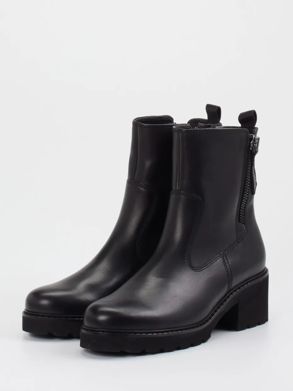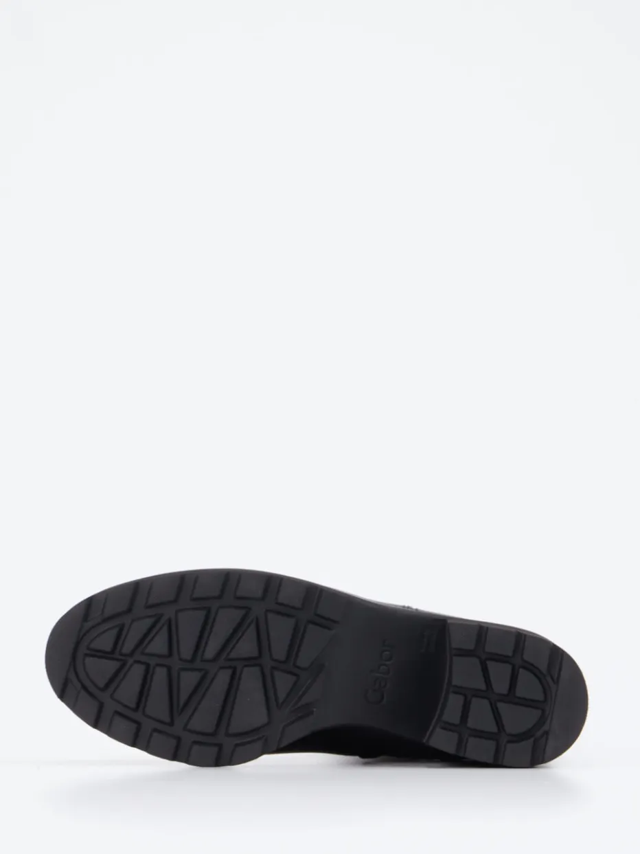 Urbaner Begleiter mit klarer Linie.Gabor Comfort präsentiert mit dieser Damen-Stiefelette ein Modell für die stilvolle Herbst-/Wintersaison. In Alltag und Office sorgt die schwarze Stiefelette aus mattiertem Kalbleder für souveräne Auftritte. Ihre klassische, knöchelhohe Form wird durch einen seitlichen Reißverschluss mit Lederzipper funktional ergänzt. Ton-in-Ton-Nähte und eine rückseitige Zuglasche betonen das reduzierte Design. Die markant profilierte Sohle mit 4 cm Blockabsatz liefert Tragekomfort und festen Stand – passend zum „Quiet Utility“-Trend. Minimalistische Mode lässt sich damit ebenso kombinieren wie klassische Wollmäntel. Ein vielseitiger Komfortschuh – gefertigt für urbanes, stilbewusstes Gehen.