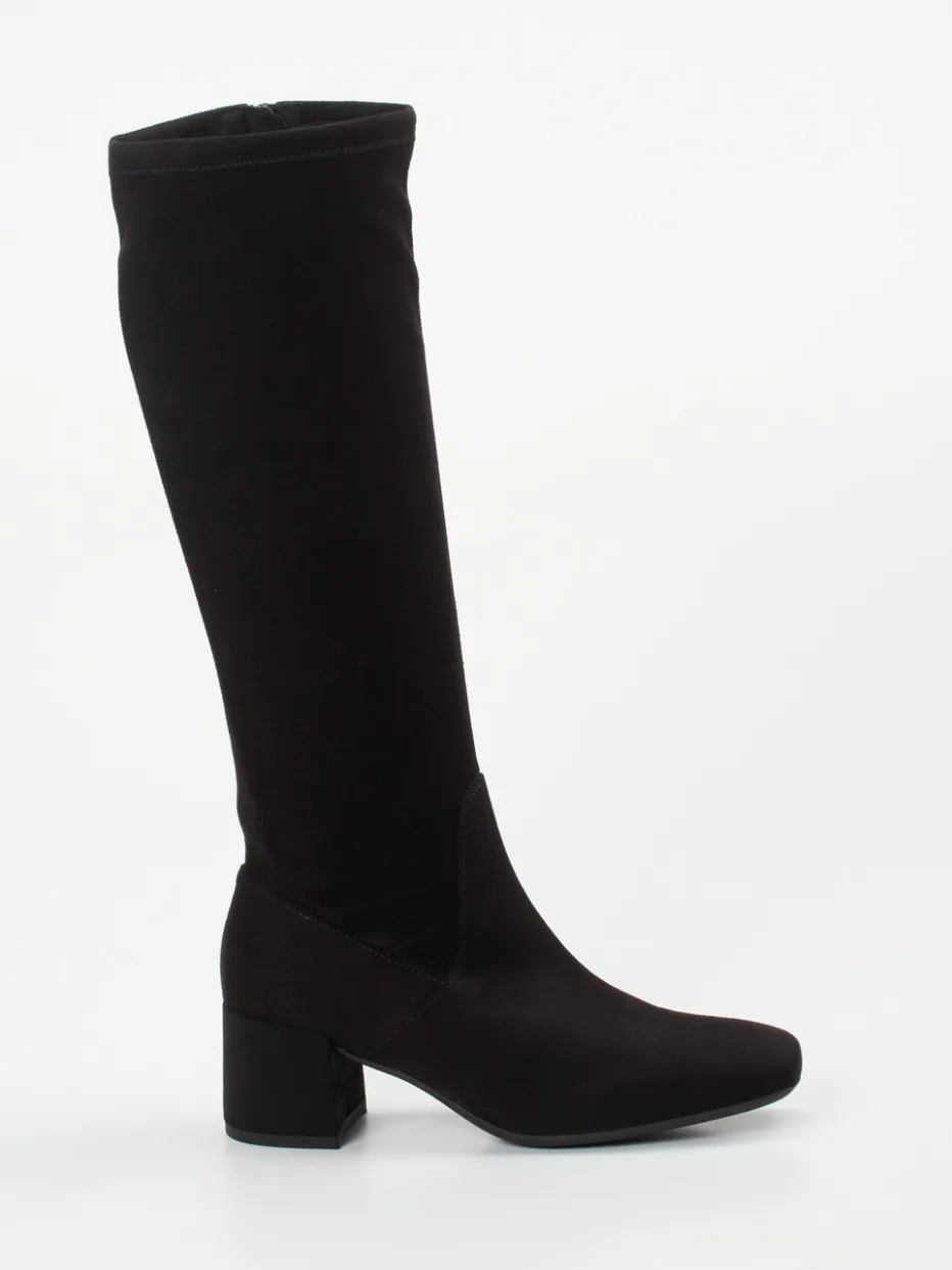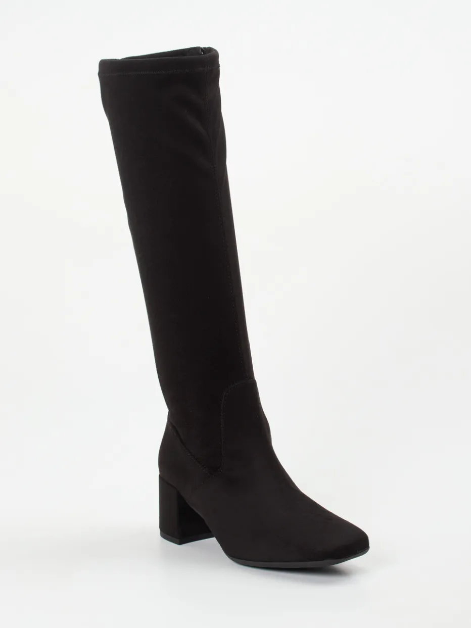 Elegant durch den Alltag.Gabor Comfort präsentiert einen Stretch-Stiefel mit komfortabler Weitschaft. Schwarz mattes Veloursleder mit samtig weicher Oberfläche trifft auf eine schlanke Silhouette und verdeckten Reißverschluss. Der elastische Schaft sorgt für angenehmen Sitz auch bei Mehrweite, während der mittelhohe Blockabsatz feminin wirkt und sicheren Halt bietet. Eine profilierte Gummisohle erhöht die Rutschhemmung – ideal für Herbst- und Wintertage. Die dezente Ton-in-Ton-Verarbeitung passt ideal zu minimalistischen Looks. Besonders stimmig in Kombination mit Kleidern oder klassischen Mänteln. Komfort trifft auf klare Linien – stilvoll gelöst mit Gabor Comfort.