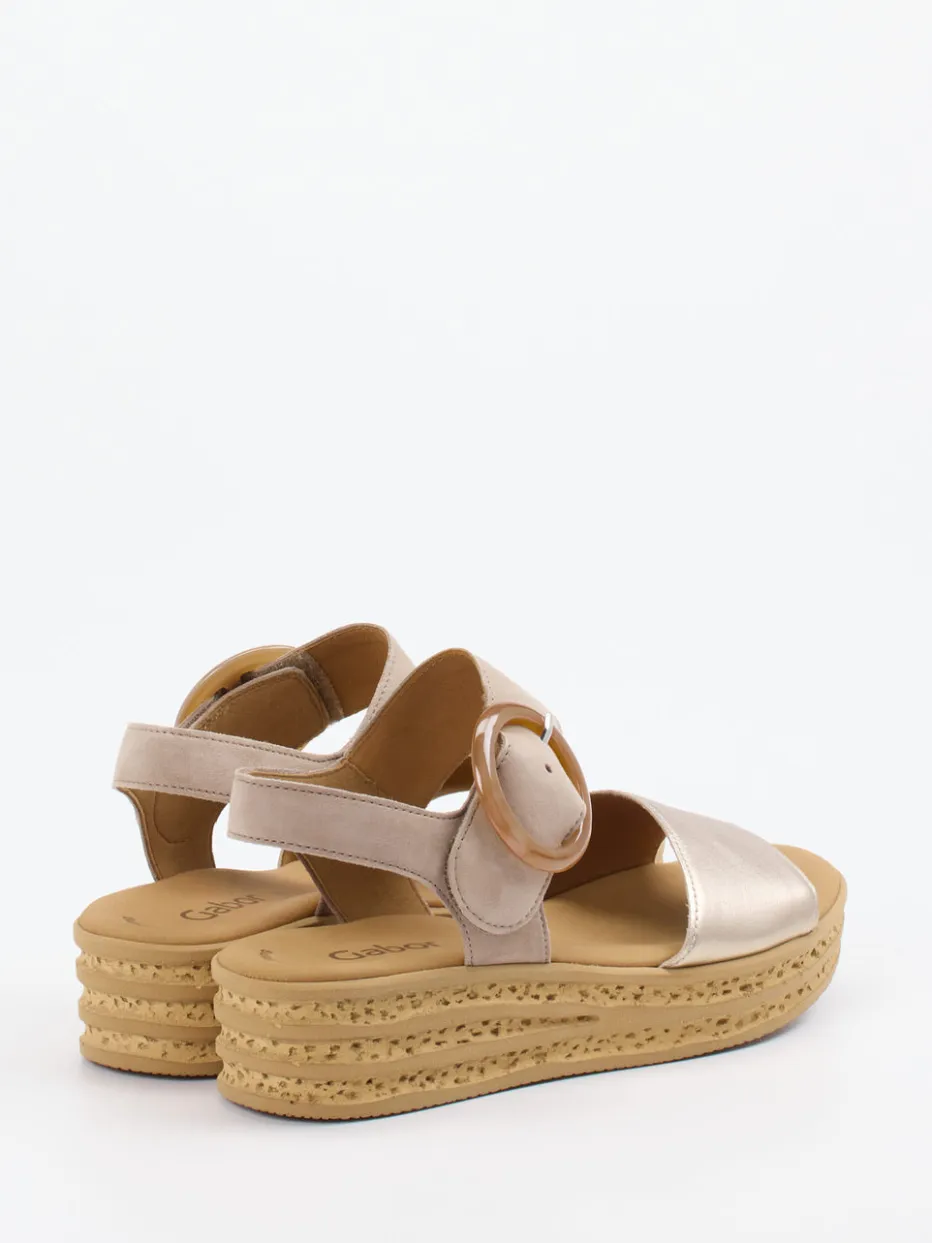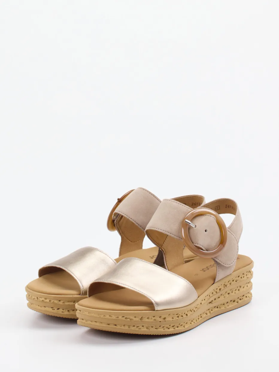 Die Keilsandalette von Gabor kombiniert samtig weiches Veloursleder mit einem komfortablen Plateau und modischem Metallic-Detail – ein stilvoller Alltagsbegleiter für warme Tage.