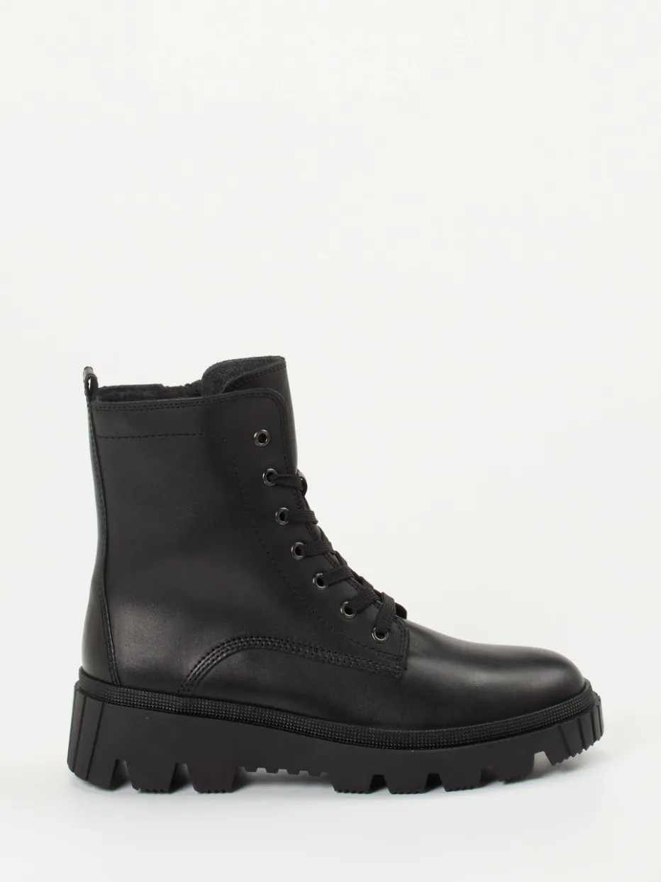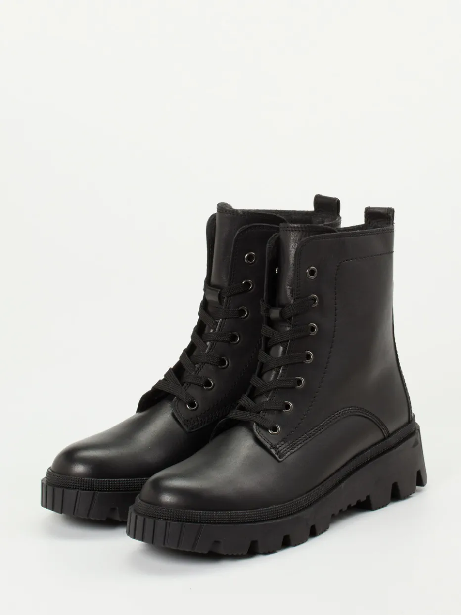 Diese hochschaftigen Gabor-Schnürboots vereinen robustes Kalbleder mit funktionaler Ausstattung. Die matte Optik und die markante Profilsohle machen sie ideal für kühlere Tage.
