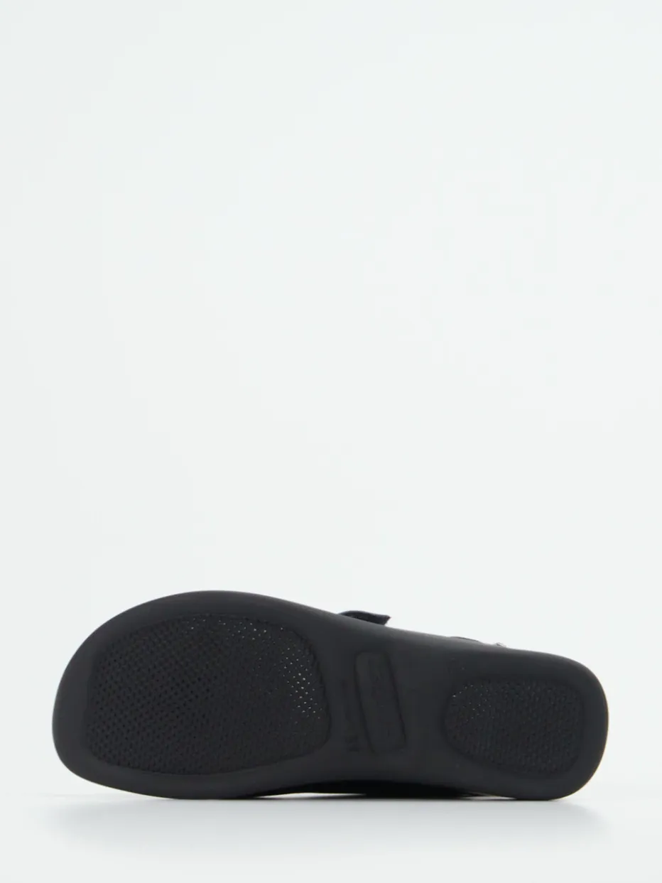 Fußgerechte Damen-Sandale mit ergonomischem Lederfußbett, hochwertigem Kalbleder und justierbarem Fersenriemen – ideal für entspannte Alltagssituationen.