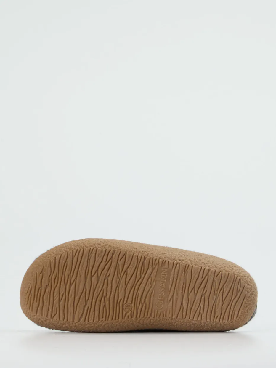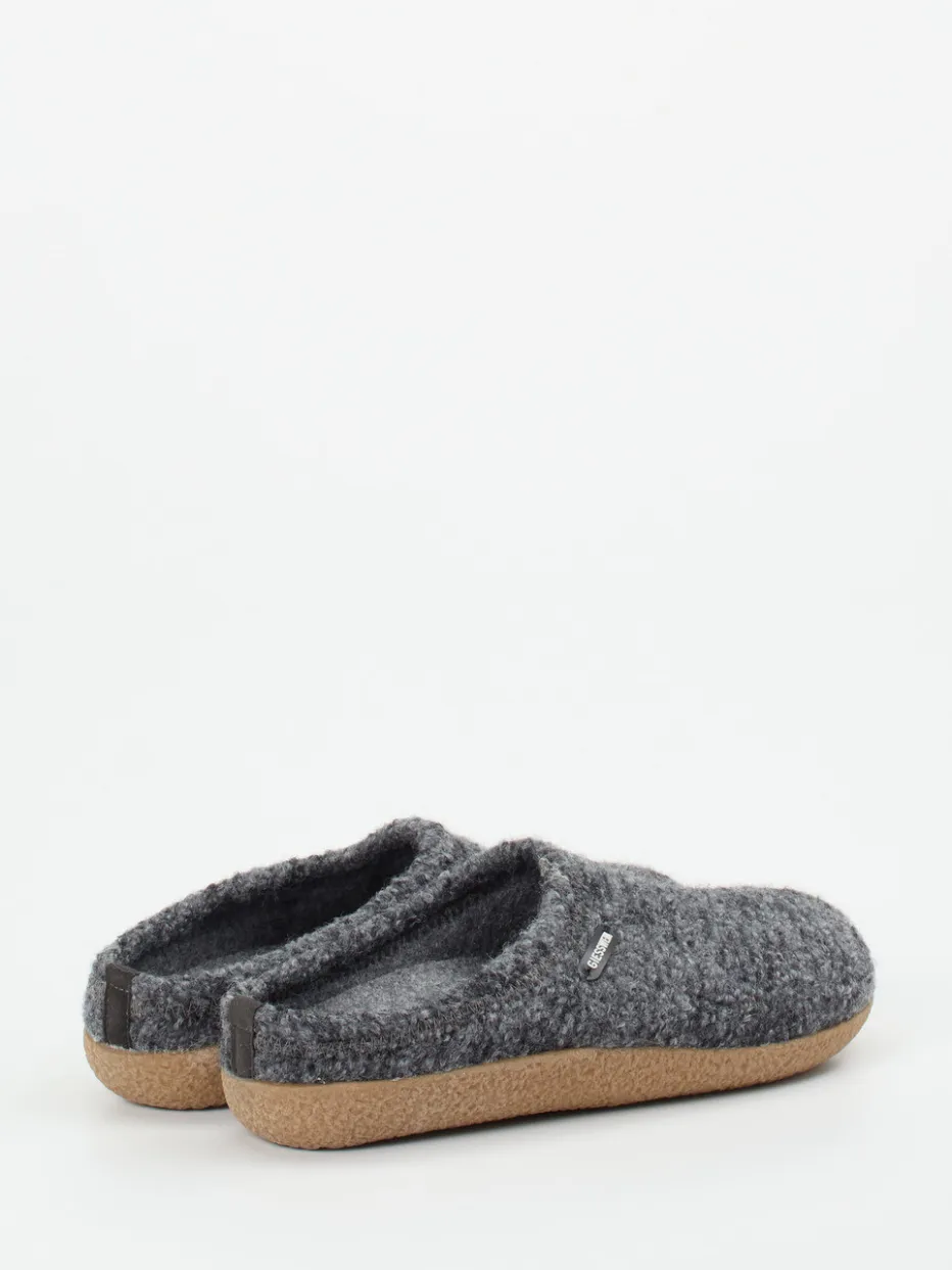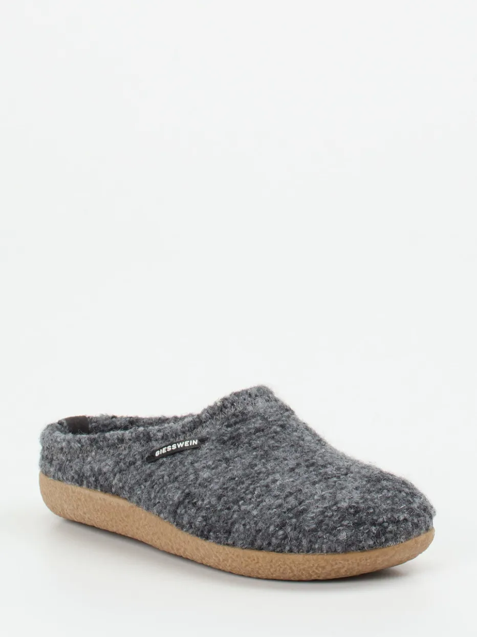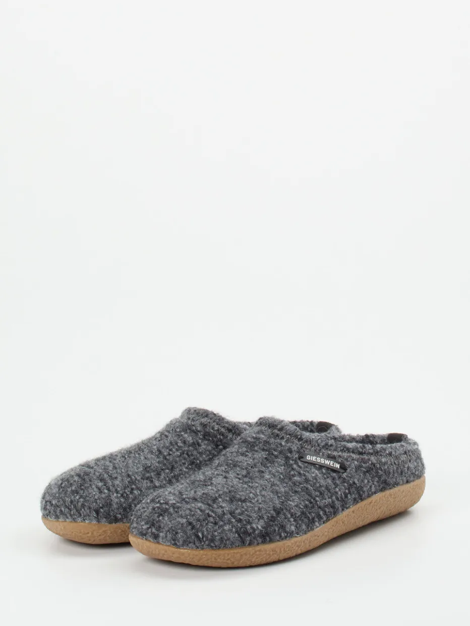 Entspannung trifft Funktionalität.Giesswein präsentiert einen hochwertigen Hausschuh in anthrazitgrauem Wollfilz. Die melierte Oberfläche der temperaturausgleichenden Schurwolle verleiht dem Modell in offener Clog-Form einen dezenten Naturlook. Das ergonomisch geformte Fußbett ist bequem und herausnehmbar. Eine strukturierte honigfarbene Gummisohle sorgt für rutschfesten Gang auf glatten Böden. Der Slip-On-Stil ohne Verschluss unterstreicht den lässigen Loungewear-Charakter. Ton-in-Ton-Nähte und ein seitliches Markenlabel setzen dezente Akzente. Ein langlebiges Basic für gemütliche Stunden mit klarer Designsprache von Giesswein.