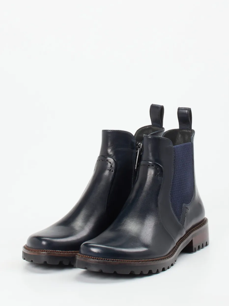 Eleganz trifft Alltagstauglichkeit.Die Marke Ginger & Glove präsentiert Chelsea-Stiefeletten für Damen mit funktionalen Details und zeitloser Ästhetik. Beim Stadtbummel oder im Büroalltag überzeugen diese boots mit glänzendem Lammleder in Nachtblau und wärmendem Textilfutter. Die schmal zulaufende, knöchelhohe Form wird durch einen seitlichen Reißverschluss sowie tonige Elastikeinsätze ergänzt. Die Kontrastsohle in Holzoptik sorgt zusammen mit der griffigen Gummisohle für Trittsicherheit, auch in der kühleren Saison. Der Look vereint Heritage-Feeling mit modernem Understatement. Stilvoller Komfort für elegante Everyday-Ensembles mit Ginger & Glove Handschrift.