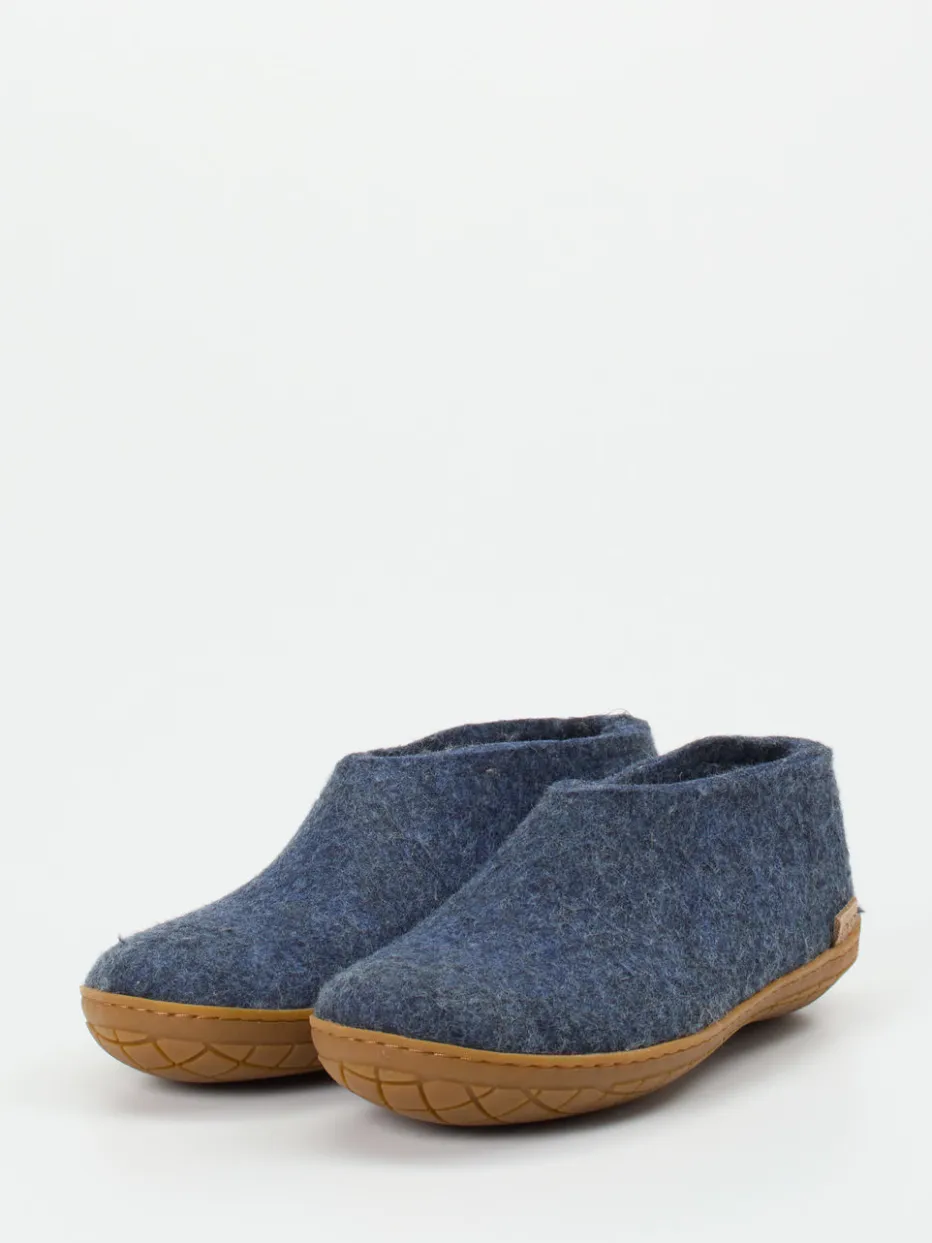 Wärme und Stil in harmonischem Gleichgewicht.Glerups steht für funktionale Hausschuhmode mit skandinavischem Flair. Der Filzpantoffel für Damen besteht aus naturbelassener, gefilzter Wolle und schmiegt sich ergonomisch an den Fuß. Ideal für entspannte Stunden daheim, sorgt der atmungsaktive Wollfilz für ausgeglichenes Fußklima – selbst auf kühlen Böden. Farblich in Jeansblau mit cognacfarbenem Akzent gehalten, wirkt das Design klar und wohnlich. Die strukturierte Gummisohle mit sichtbarer Naht bietet sicheren Halt, der offene Einstieg unterstützt schnelles Anziehen. Minimalistische Formgebung und Label-Patch betonen den nordischen Stil. Ein Hausschuh für Komfortliebhaber:innen mit Sinn für ruhiges Design und hohe Qualität.