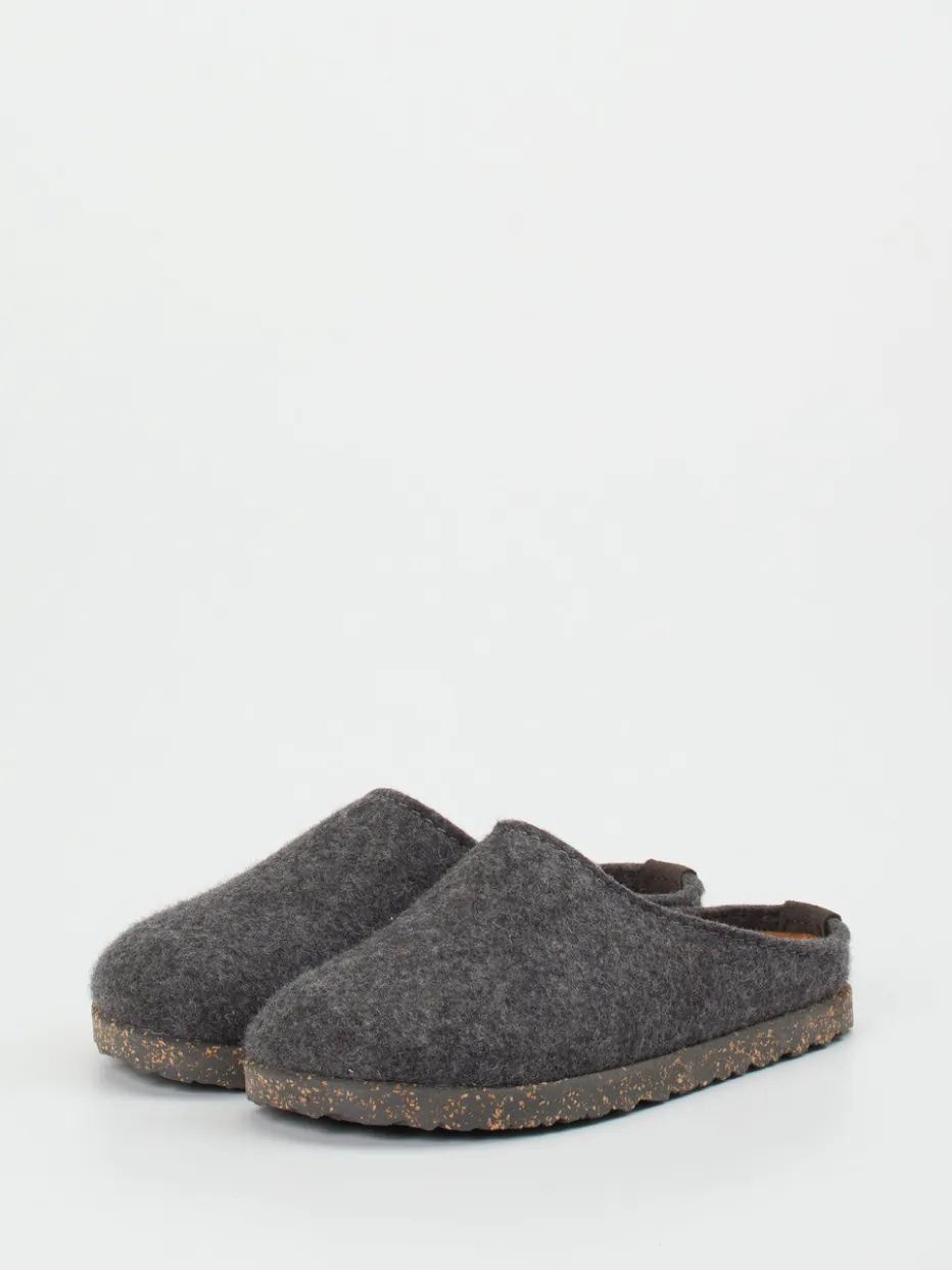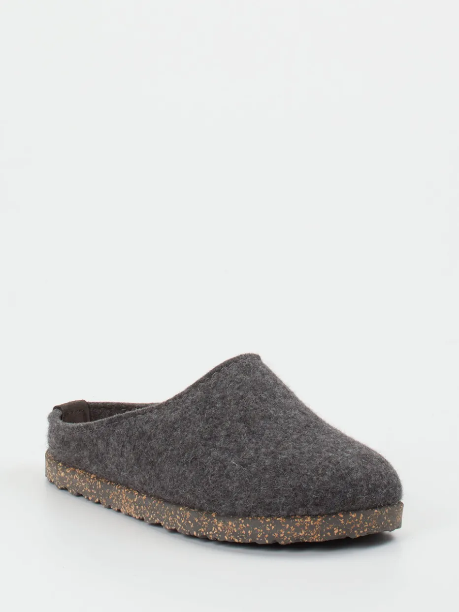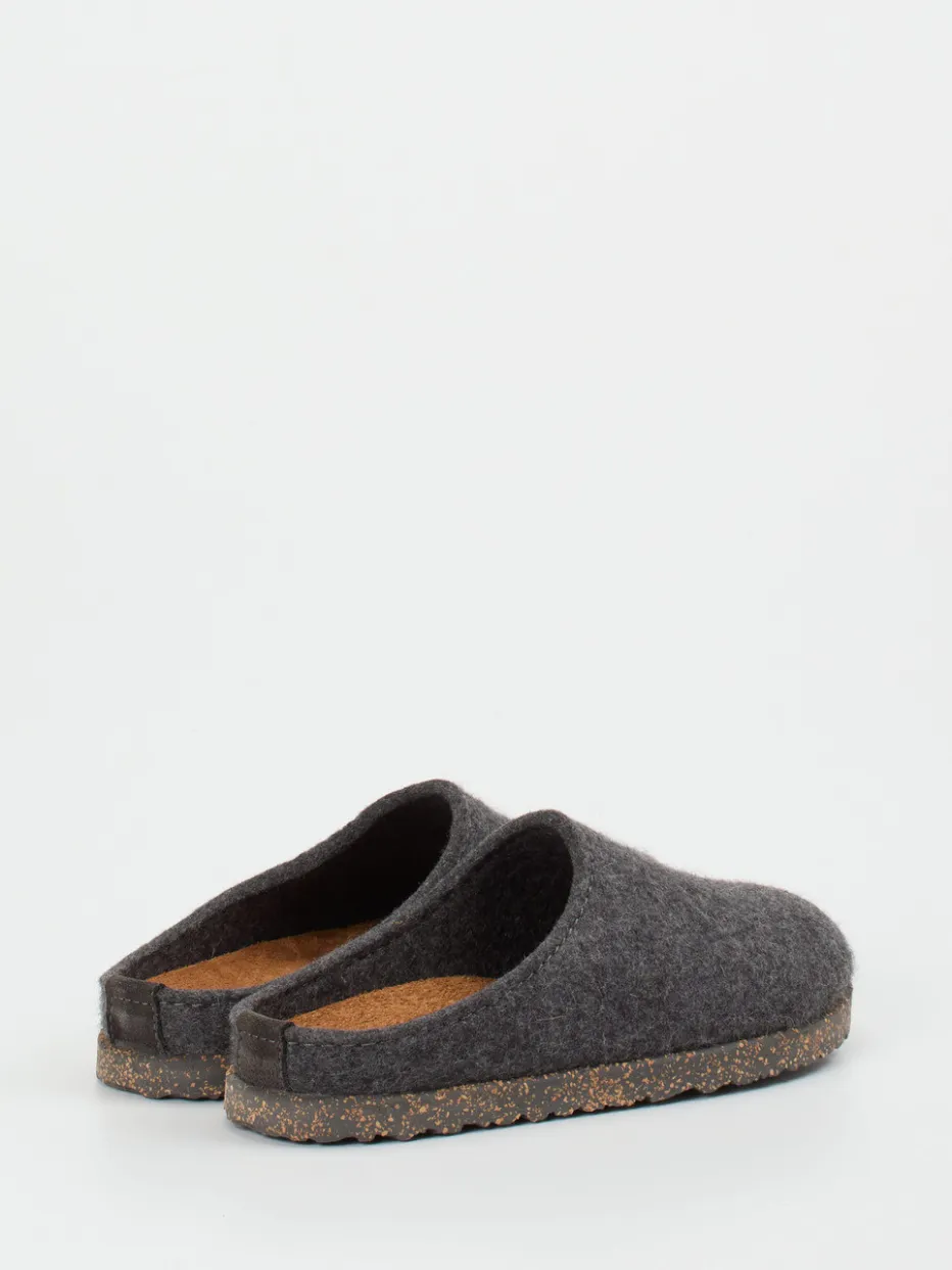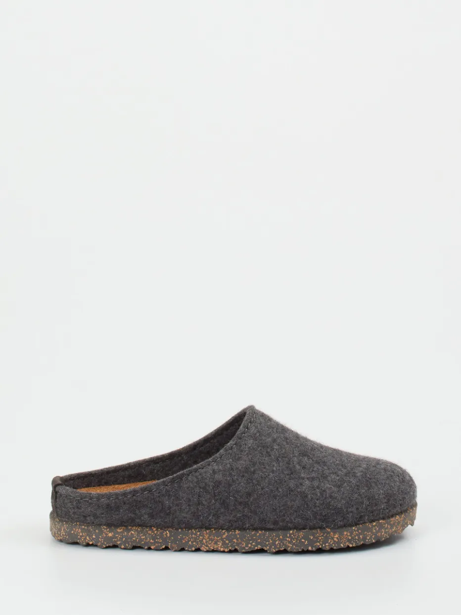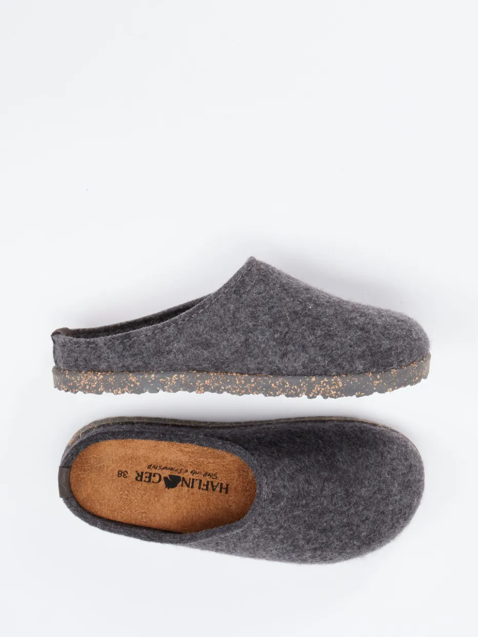 Wohnkomfort trifft Materialästhetik.Haflinger präsentiert klassische Filzpantoffeln für Damen und Herren. Ideal für gemütliche Stunden daheim überzeugt dieses Modell mit seiner geschlossenen Mule-Form und der offen gearbeiteten Ferse. Das Obermaterial aus reiner Wolle zeigt sich weich, angenehm meliert und atmungsaktiv. Die ergonomische Kork-Latex-Sohle mit Naturkork-Optik und strapazierfähiger Gummilaufsohle sorgt für Trittdämpfung und Formbeständigkeit. In Anthrazitgrau gehalten, passt der Hausschuh optisch in minimalistische wie skandinavische Wohnwelten. Der Look repräsentiert den „Indoor Cocooning“-Trend der Saison. Ein durchdachtes Komfortkonzept – zeitlos, funktional, aus Naturmaterialien gefertigt.