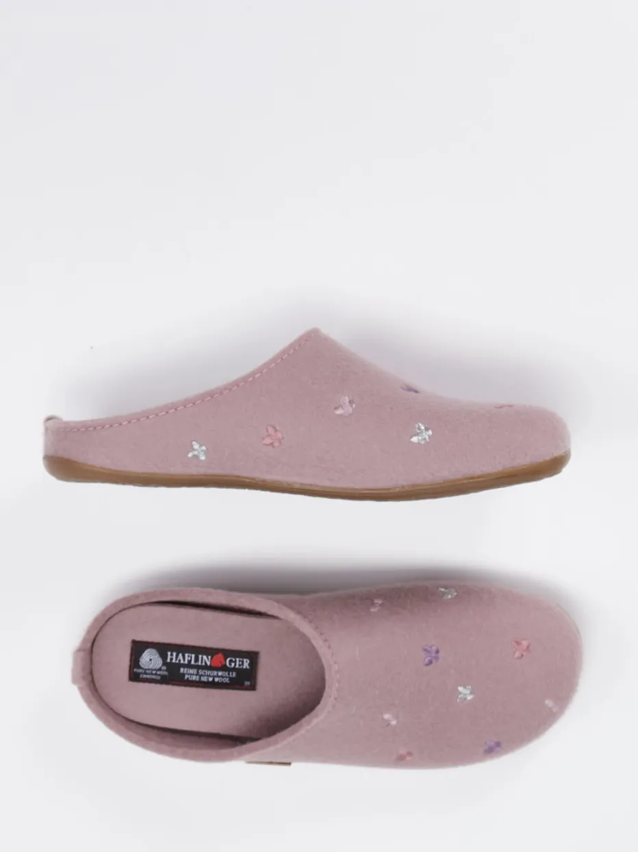 Haflinger kombiniert bei diesen Pantoffeln hochwertiges Wollfilz mit zarter Stickerei und sorgt so für stilvolle Behaglichkeit im Alltag.