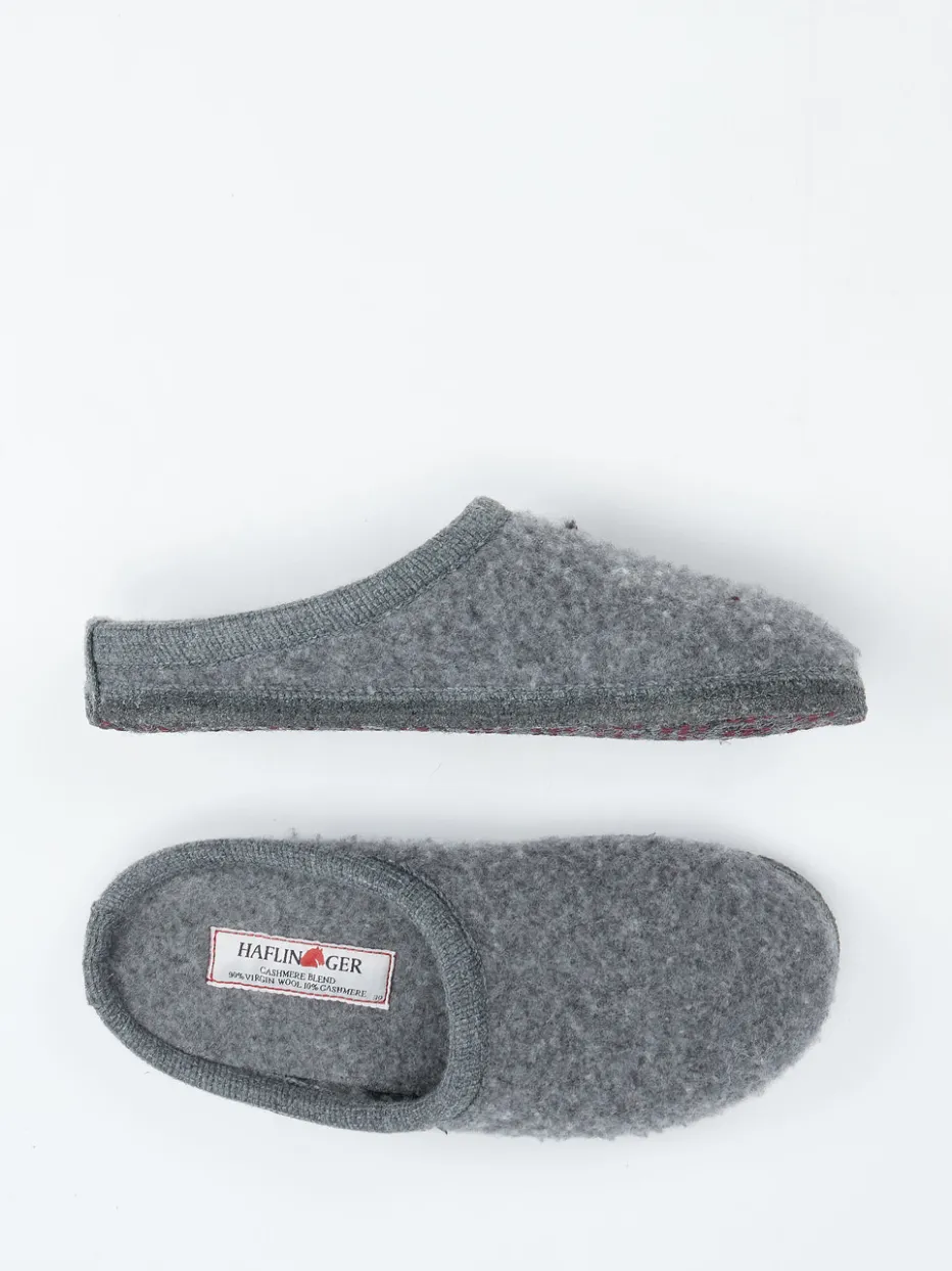 Reduziert auf das Wesentliche.Haflinger präsentiert mit dieser Filzpantoffel einen unisex Hausschuh im klaren, minimalistischen Stil. Für entspannte Stunden daheim: Der anthrazitgraue Clog aus temperaturregulierendem Kaschmir-Wollfilz verbindet natürlichen Komfort mit alltagstauglicher Funktionalität. Die filzige Oberfläche sorgt für ein angenehm weiches Tragegefühl, während die strukturierte Gummisohle sicheren Halt gibt. Das offene Fersendesign unterstreicht die lässige Silhouette mit Scandi-Anmutung. Farblich abgestimmte Einfassungen und ein dezentes Label-Patch setzen feine Akzente. Besonders passend zu weichen Lounge-Outfits und Kuschelsocken. Haflinger steht für langlebige Qualität aus Naturmaterialien.