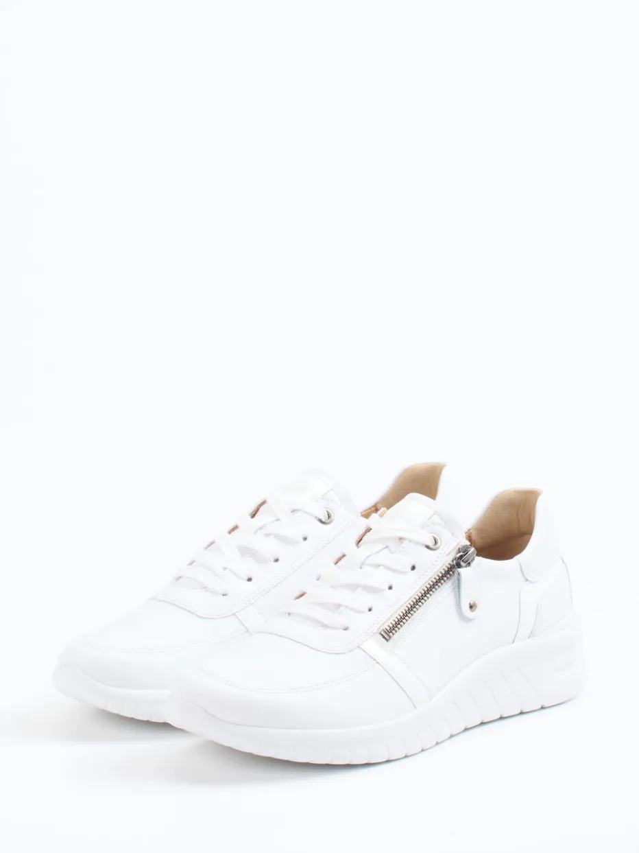 Unkomplizierter Komfort mit Stil.Hartjes präsentiert einen Damen-Komfort-Sneaker, gefertigt aus weichem Kalbleder. Ideal für entspannte Alltagswege bietet dieser Sneaker mit ergonomischer Gummisohle und gepolstertem Einstieg spürbare Unterstützung. Die Kombination aus Schnürung und seitlichem Reißverschluss erleichtert den Einstieg. In elegantem Weiß mit matter Oberfläche und Ton-in-Ton-Nähten zeigt er sich im modernen Minimalismus. Der Streetwear-inspirierte Look passt zu cleanen Freizeitoutfits und tritt im Trendbild „Quiet Luxury“ freundlich zurückhaltend auf. Hochwertige Verarbeitung, durchdachte Passform und dezenter Stil – typisch Hartjes.