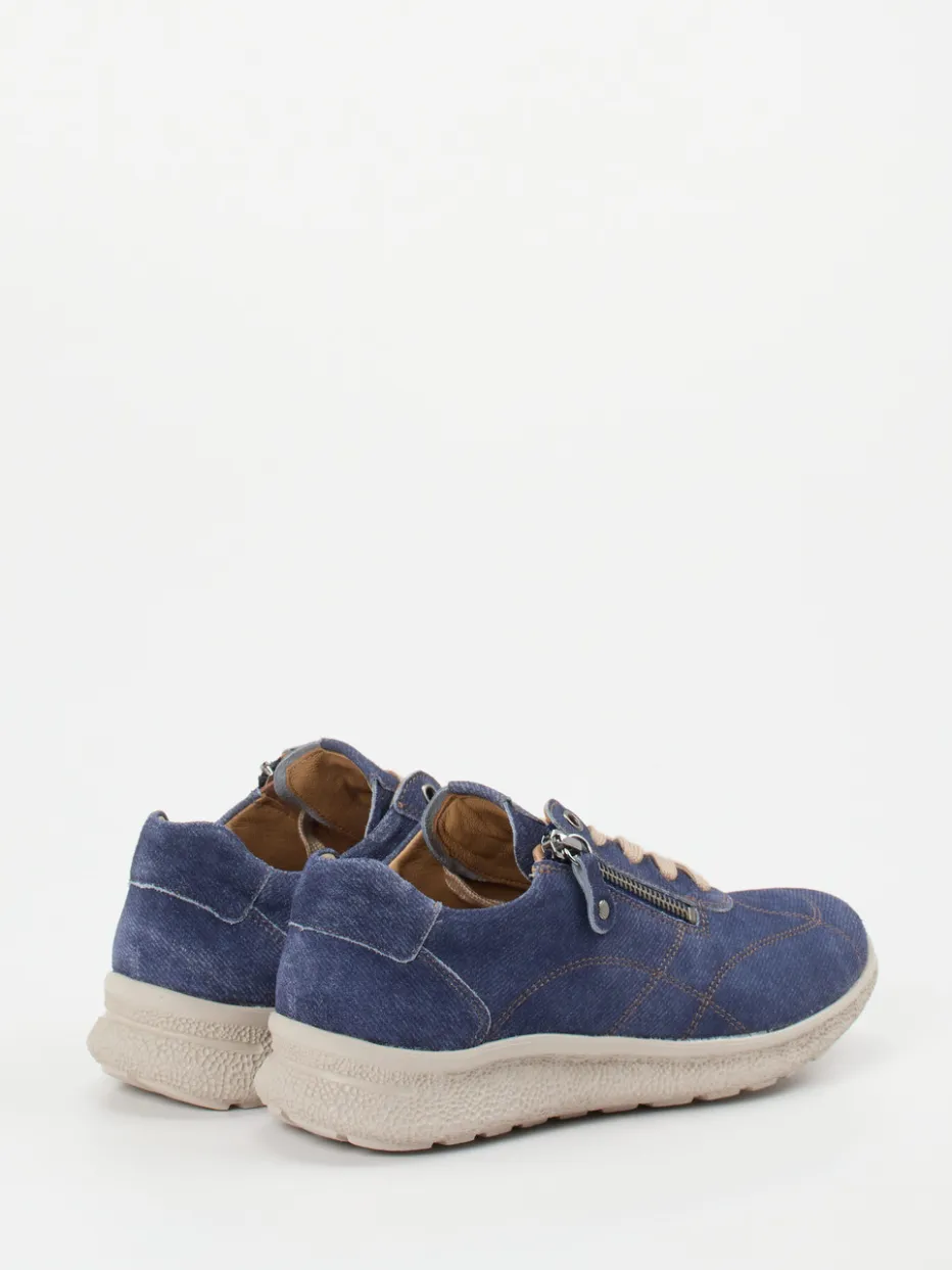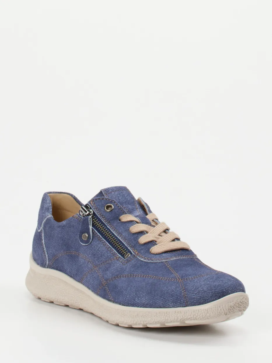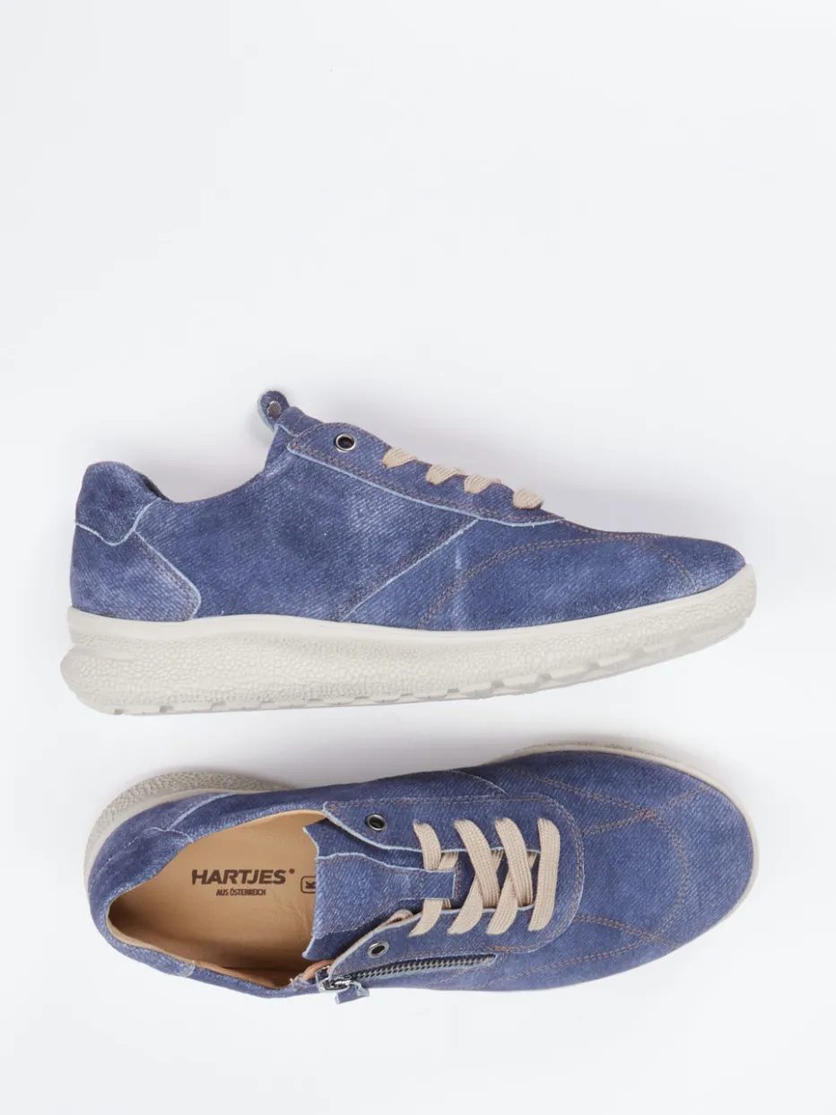 Der Komfort-Sneaker von Hartjes überzeugt durch butterweiches Veloursleder in Denim-Optik und eine ergonomisch geformte Sohle. Durch sein durchdachtes Design verbindet er Komfort mit einem lässig-modernen Look.